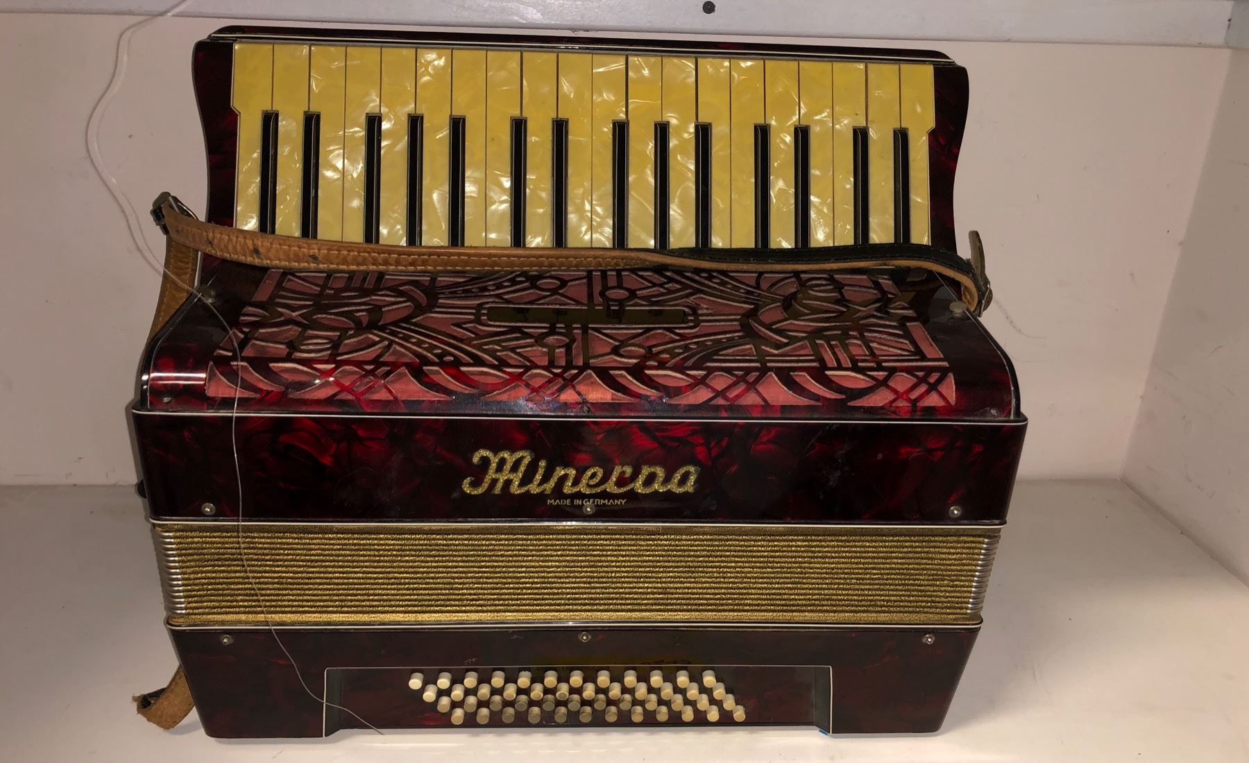 Vintage German accordion Minecoa - without case (2 torn leather straps)