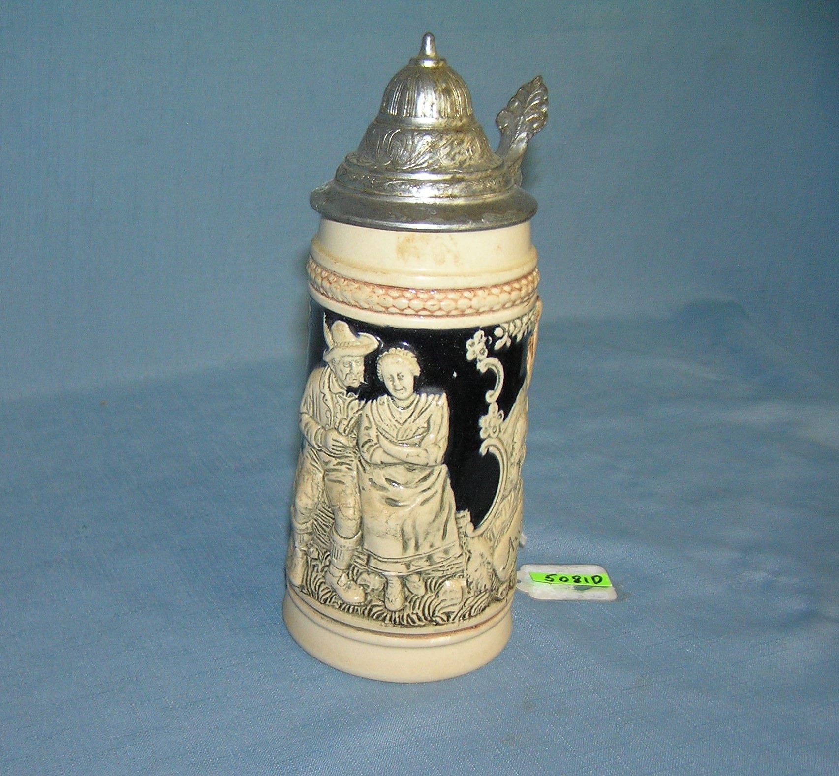 Vintage German beer stein features a couple on front est. value $100.00-$125.00