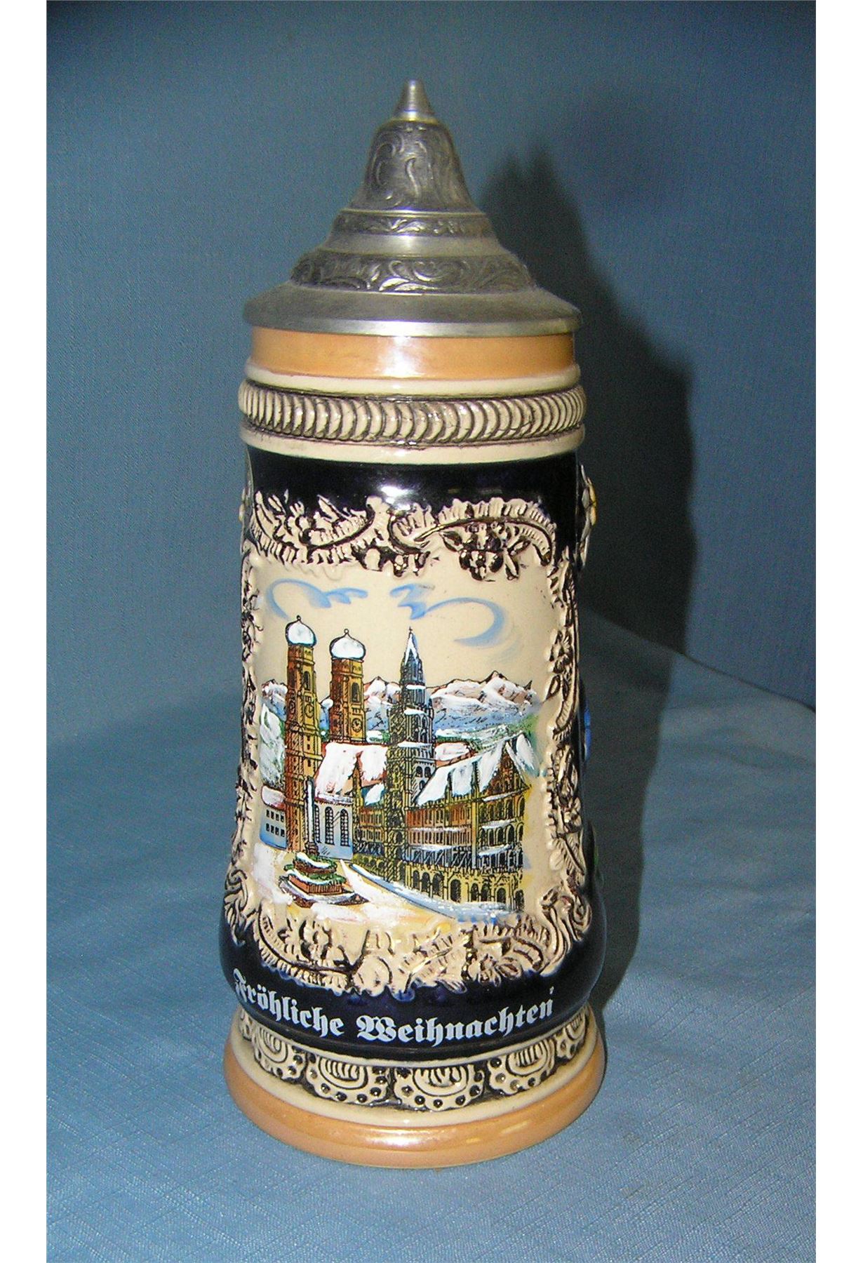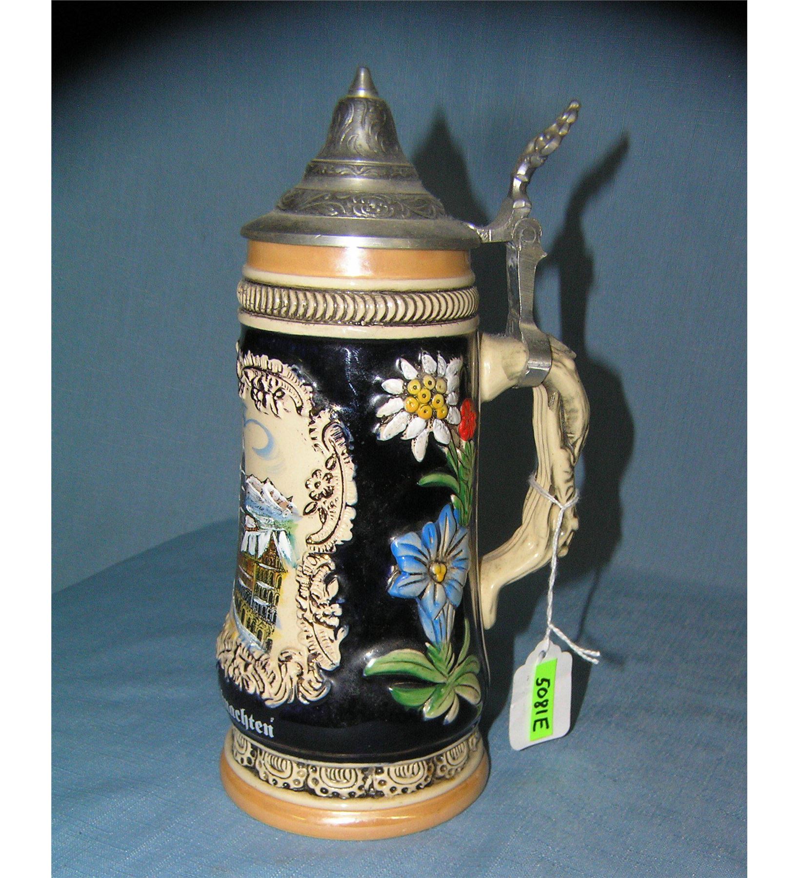 Vintage German beer stein features early German city buildings est. value $125.00-$150.00