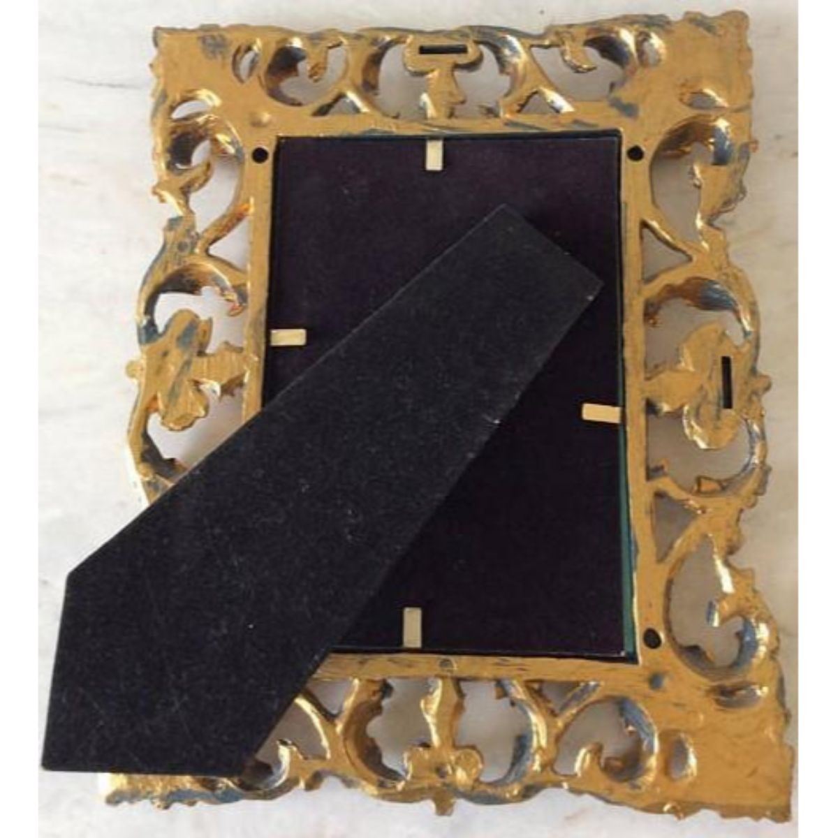 Vintage ornate gilt Florentine picture frame to fit a 4†X 6†picture. Built on easel back for vertical or horizontal. Stamped Italy on back of frame. -10037-031918-ES-86551