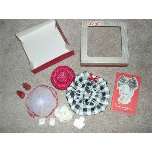 Vintage Ginger Outfit MIB W/ Booklet. The Ginger doll is an 8" hard plastic doll from the 1950's. Items pictured included in lot. Item comes from a smoke free environment. Buyer to pay $10 for shipping, handling, and insurance. Thanks for viewing.