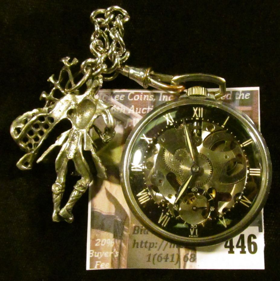 Vintage Girard-Perregaux & Co. Shell model skeleton pocket watch with Scottish bagpiper watch fob on a chain. Runs, keeps time. These go for $250+ on ebay!