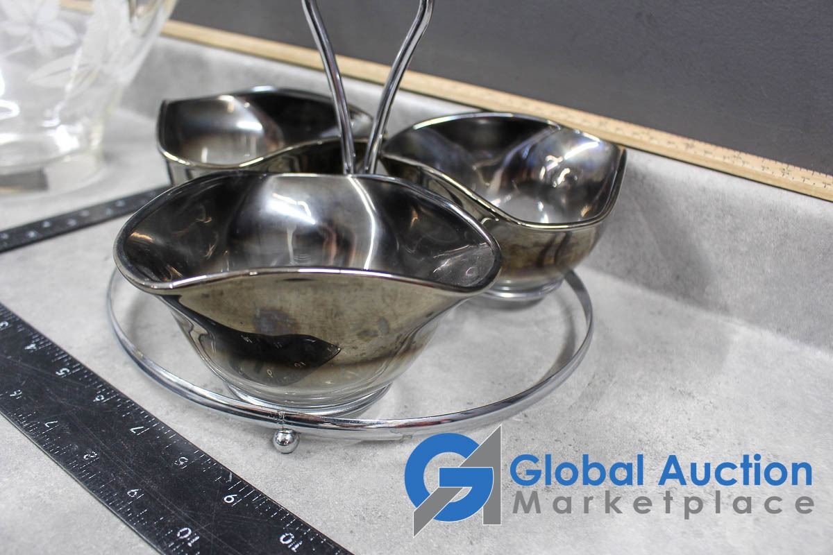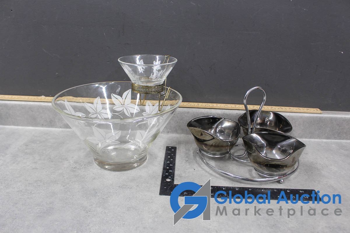 Vintage Glass Chip&Dip Set and Dip Set w/Caddy