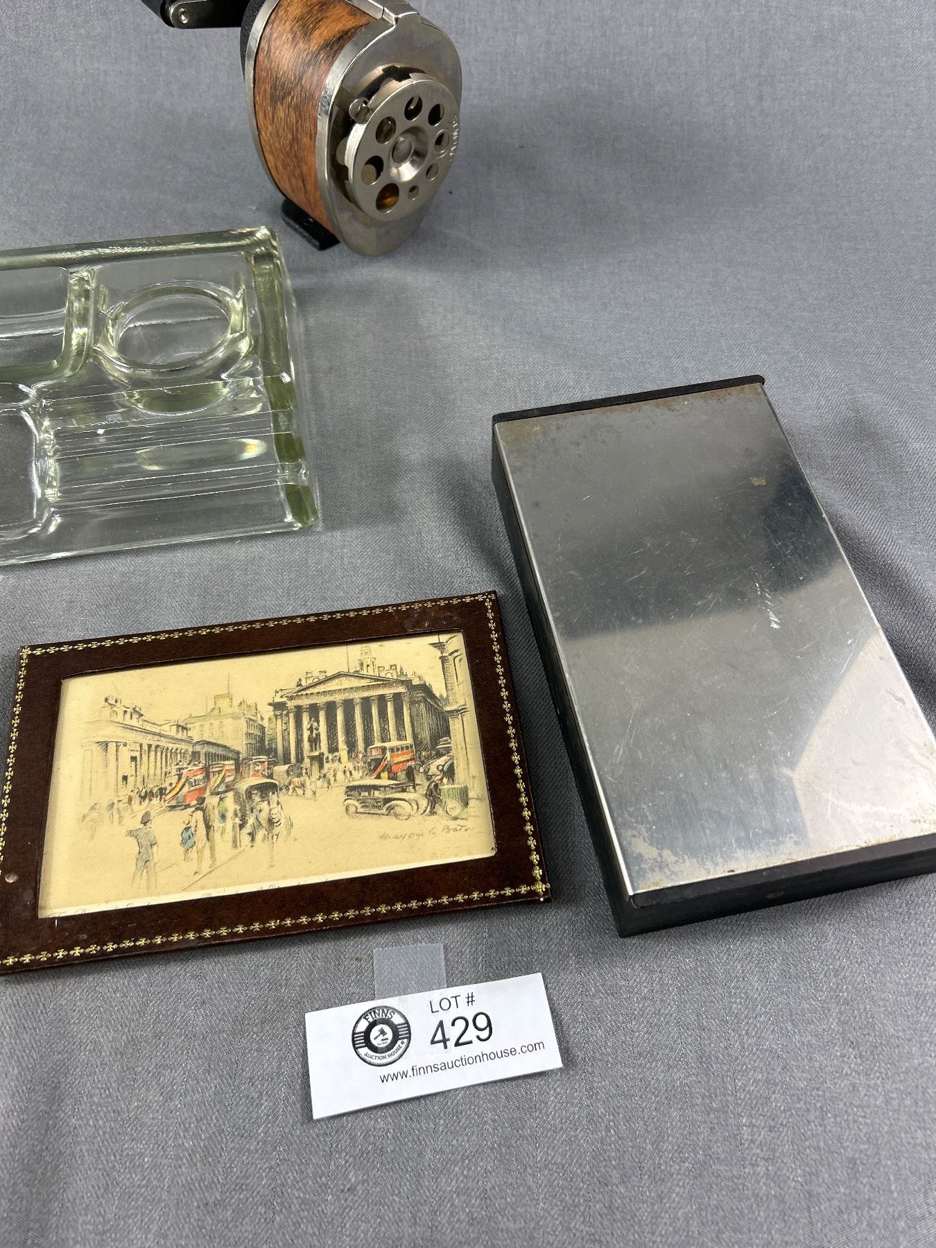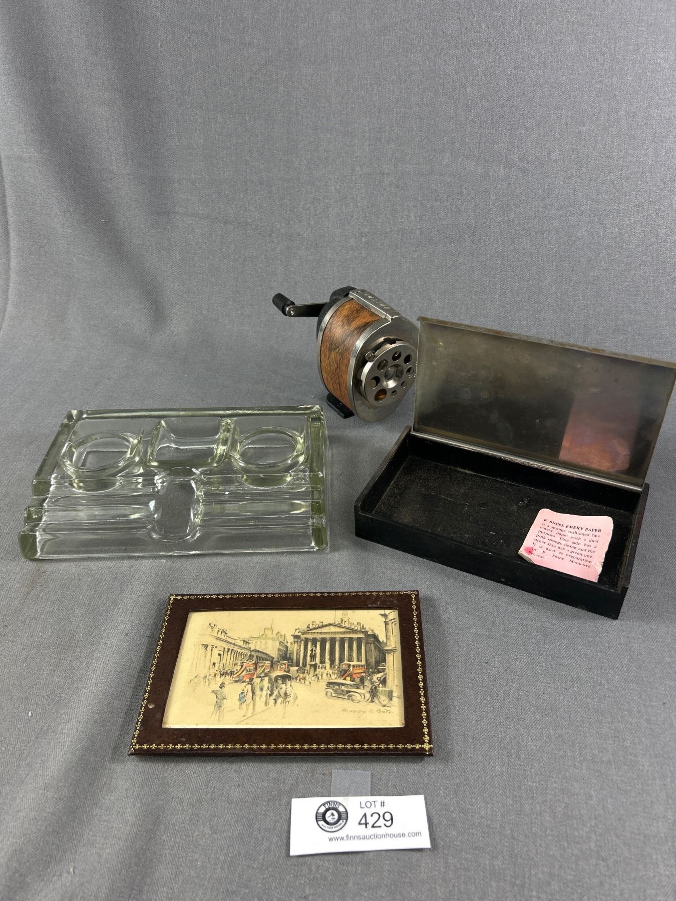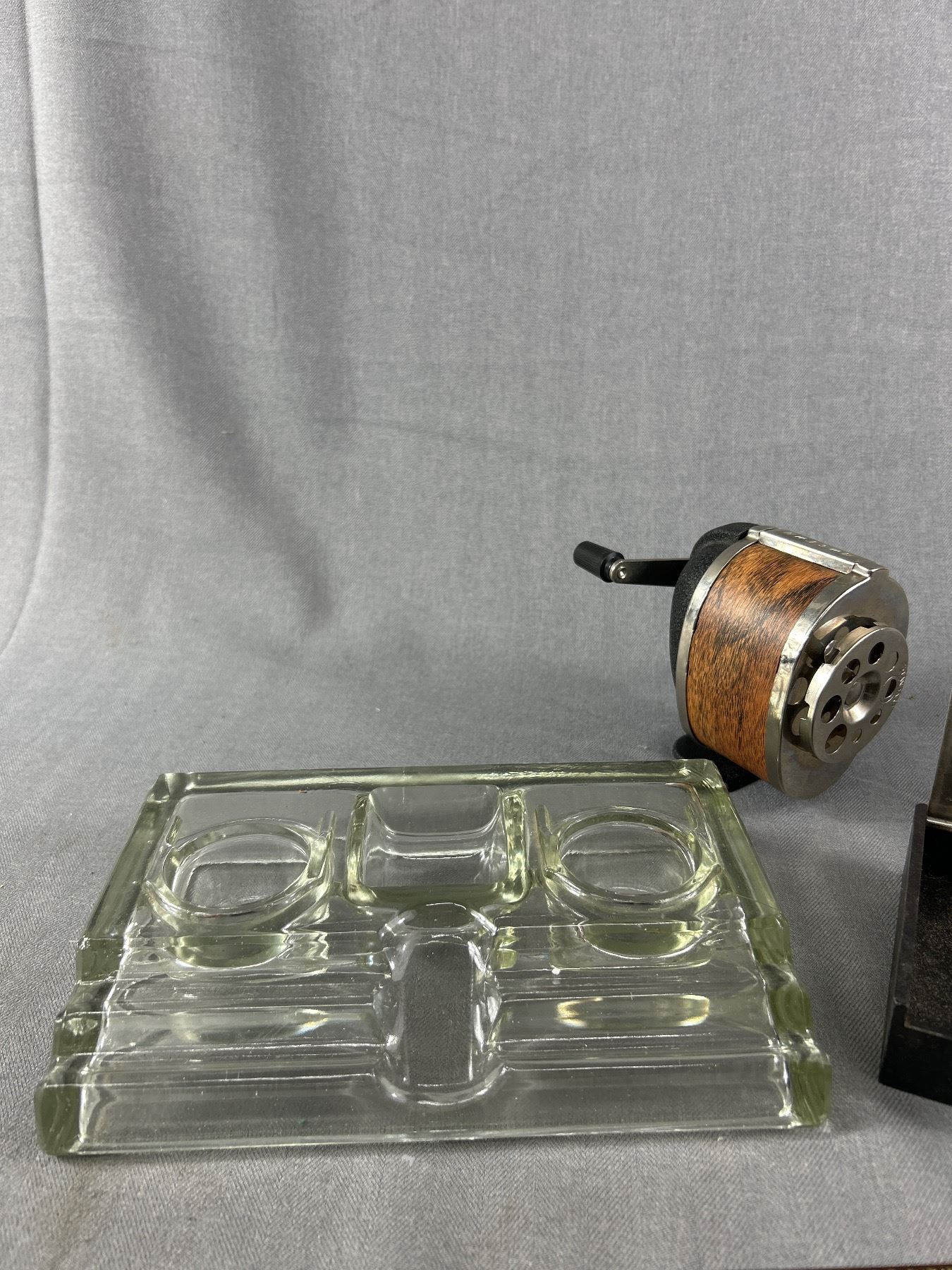 Vintage Glass Inkwell, Pencil Sharpener, etc