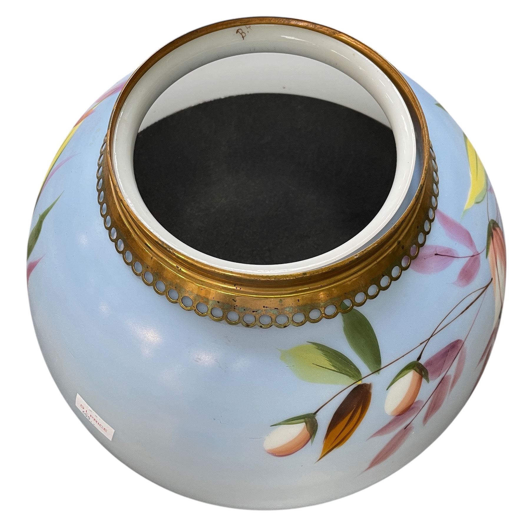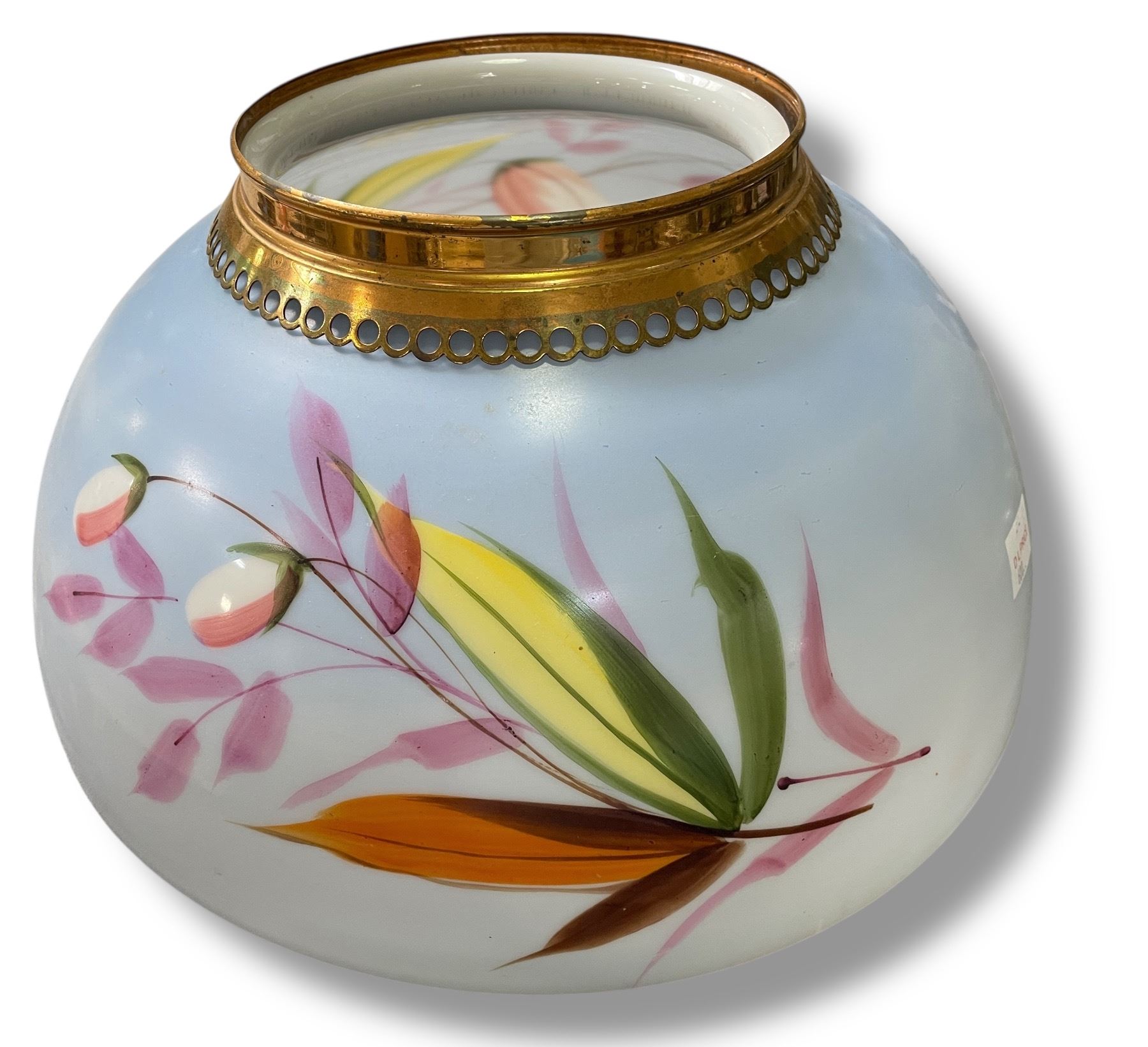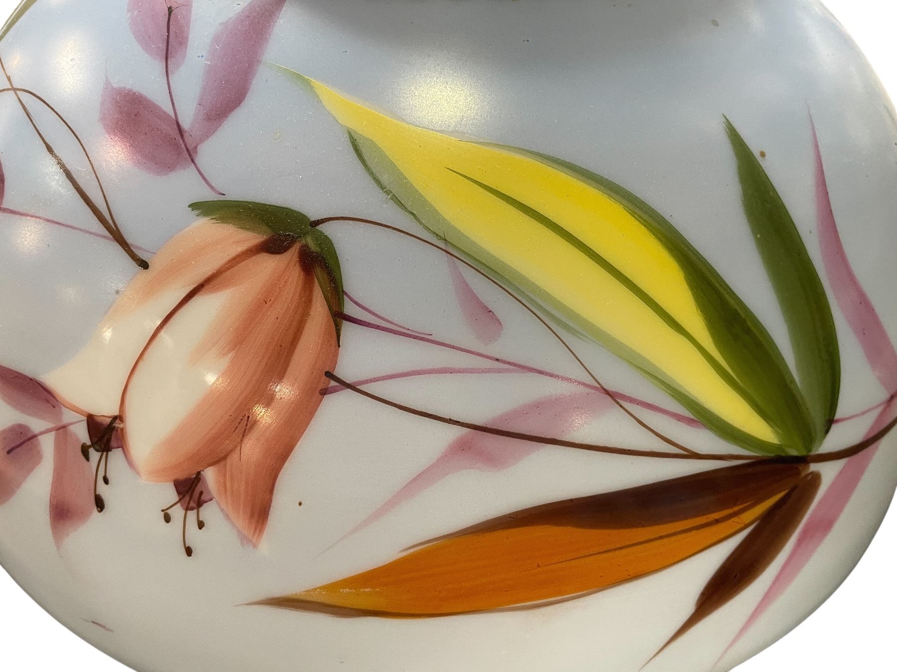 Vintage Glass Lamp Shade with Hand Painted Floral Design - 14" Diameter