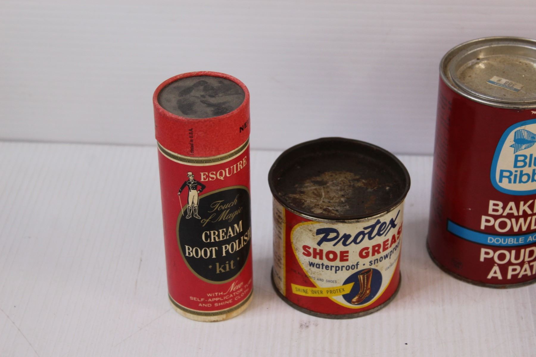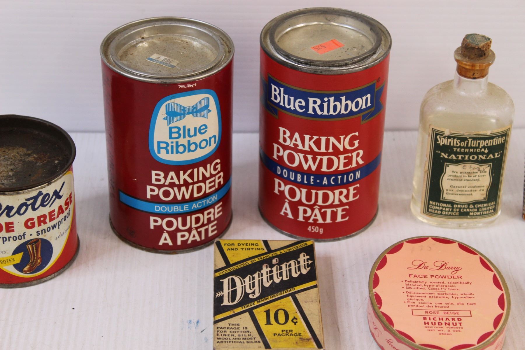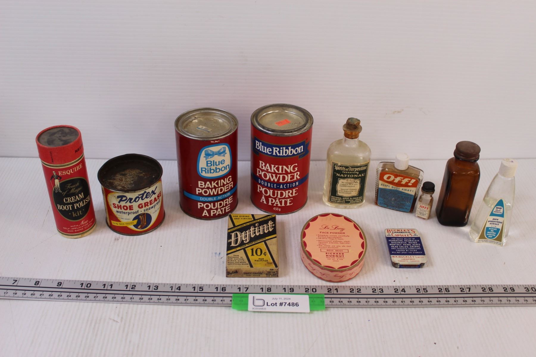 Vintage Glass & Tin & Cardboard Box Containers (Some Contain Liquids, Can Not Ship)