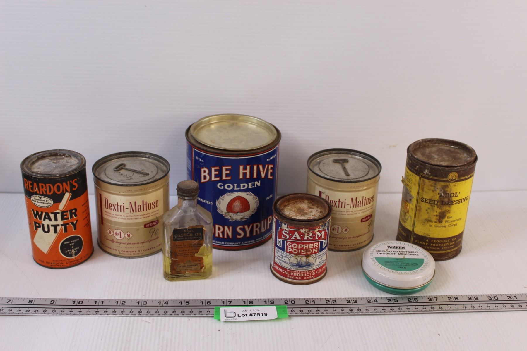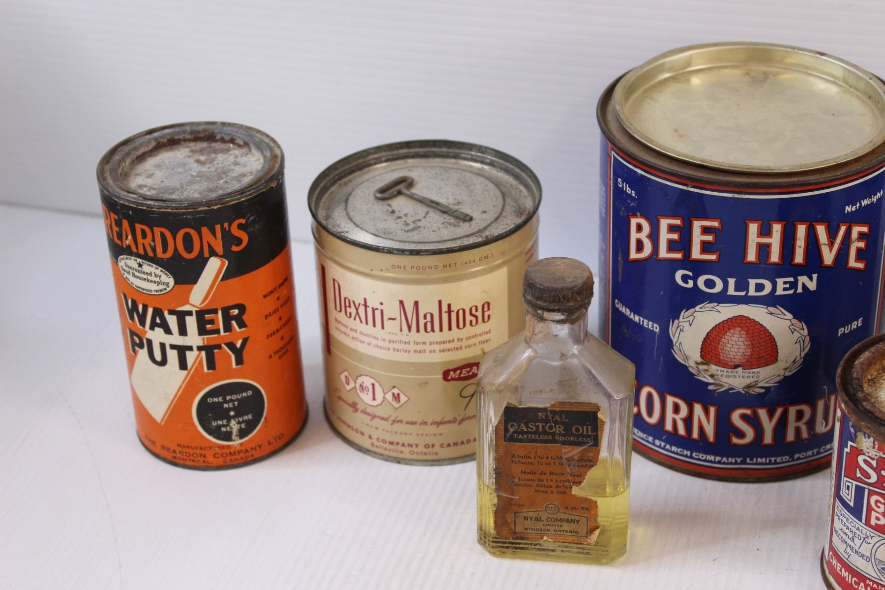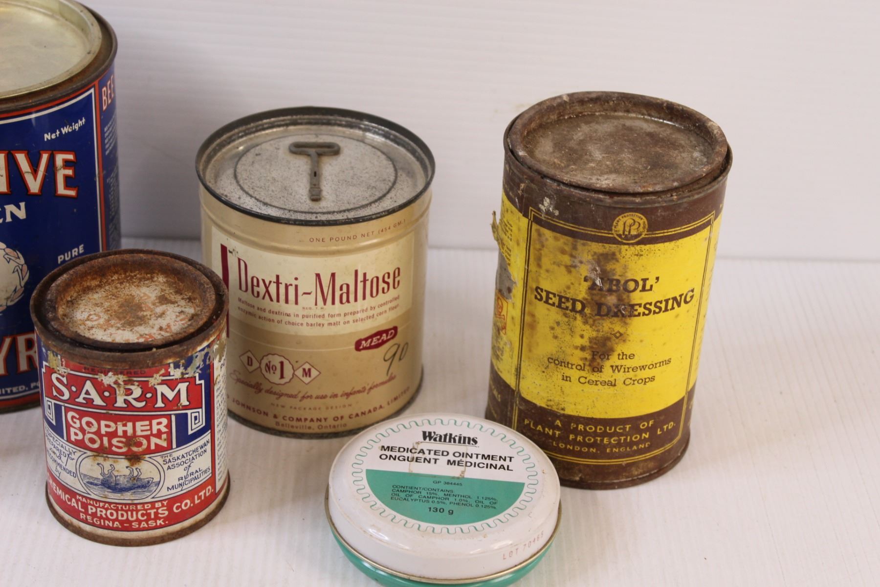 Vintage Glass & Tin Containers (Contains Some Liquid, Can not Ship)