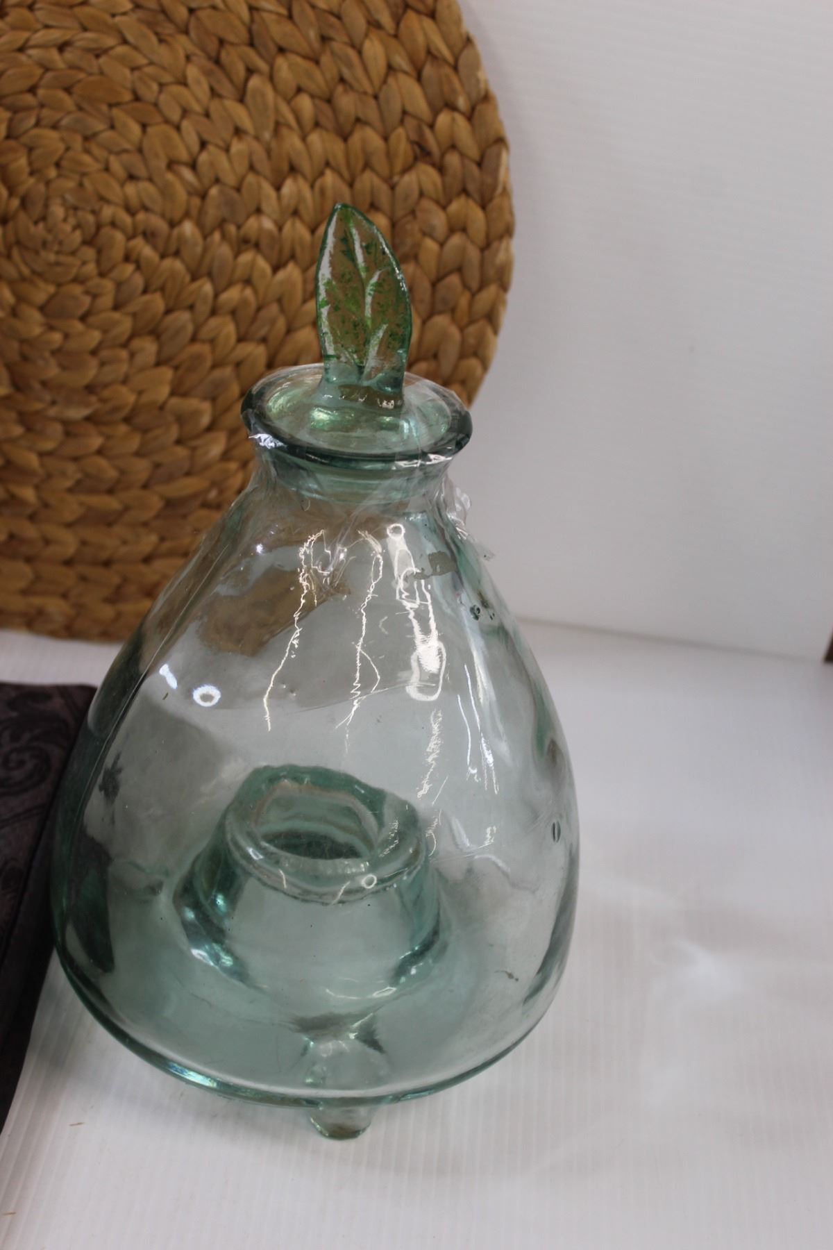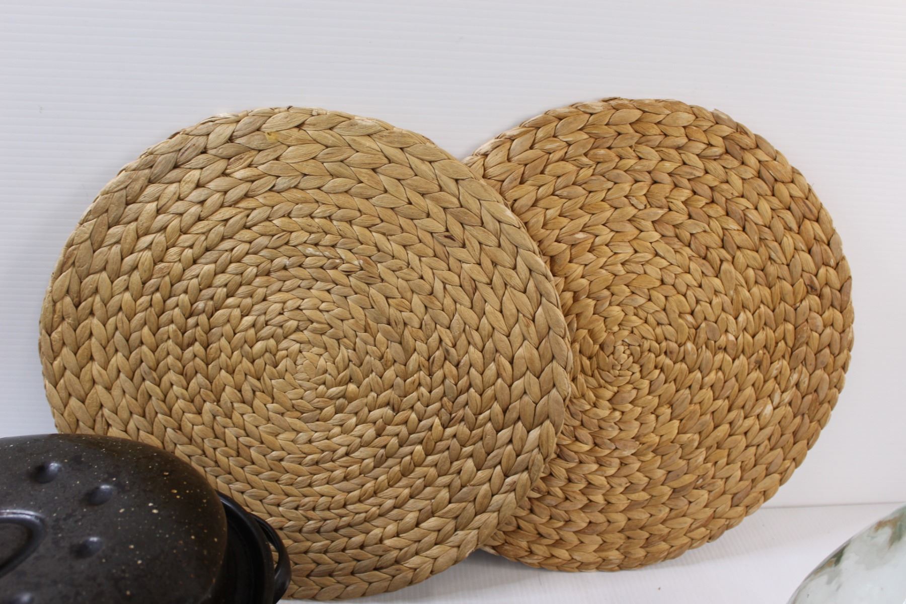 Vintage Glass Wasp Trap, Roaster, (2) Wicker Placemats, Placemat