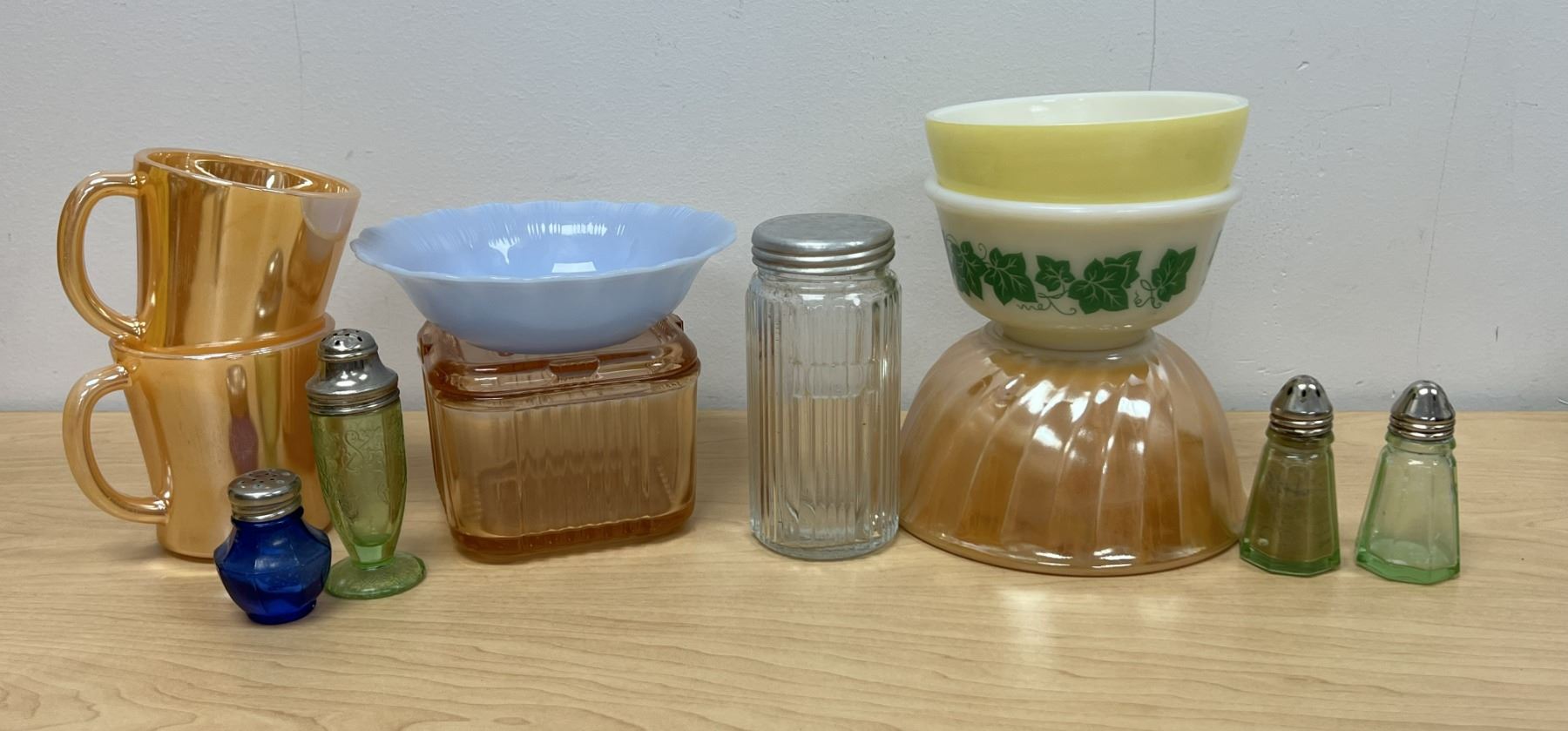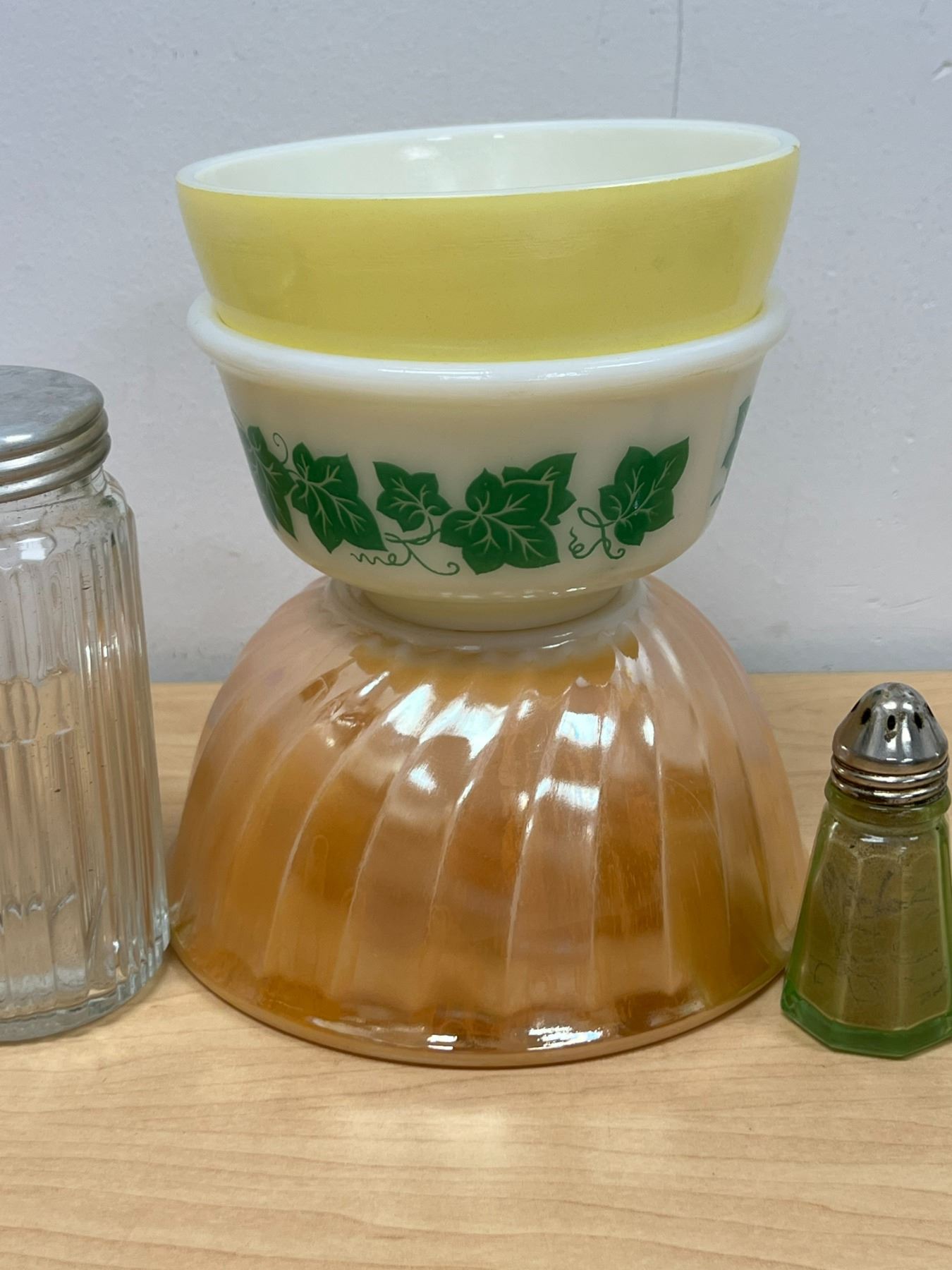 Vintage Glassware Lot as pictured - Pyrex / Fire King etc Nice overall with some use. Largest bowl approx: 6"