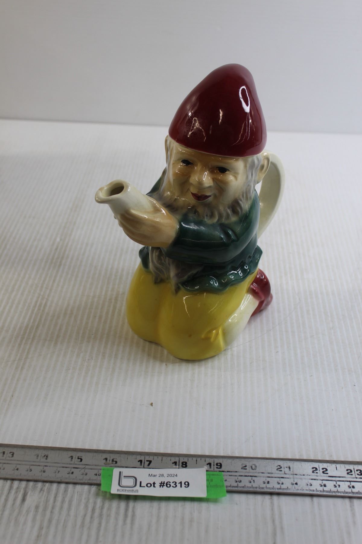 Vintage Gnome Teapot - 9 1/4" Tall, Chip on Spout, Chip and Crack on Hat