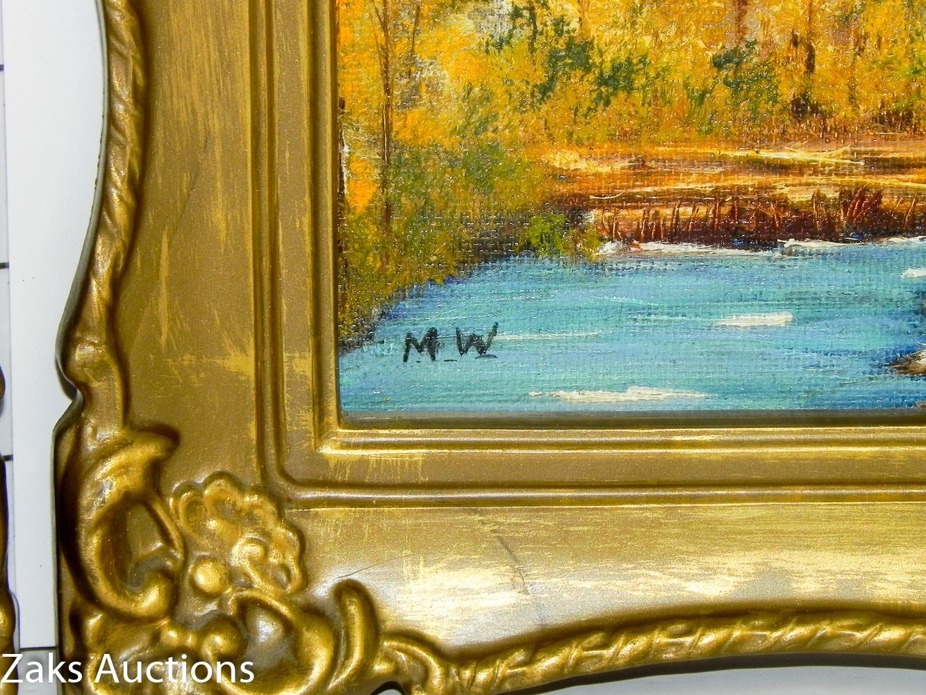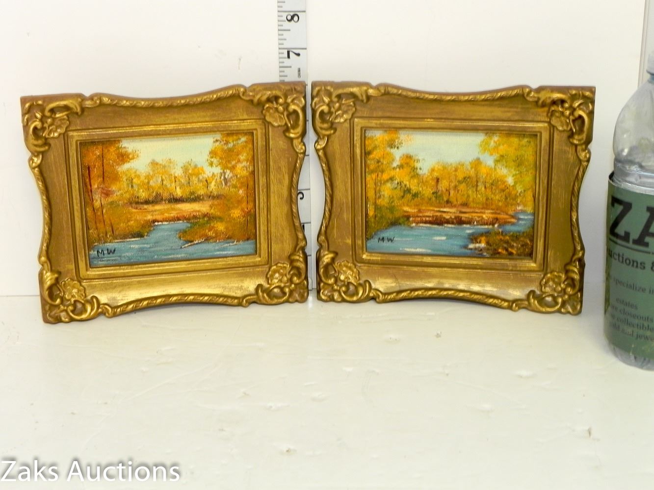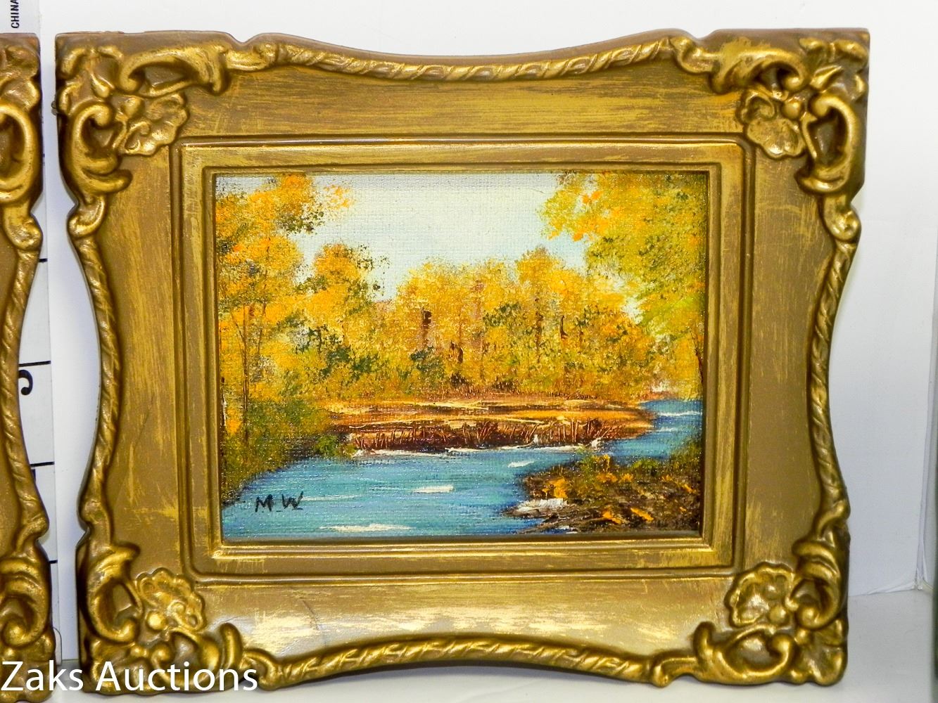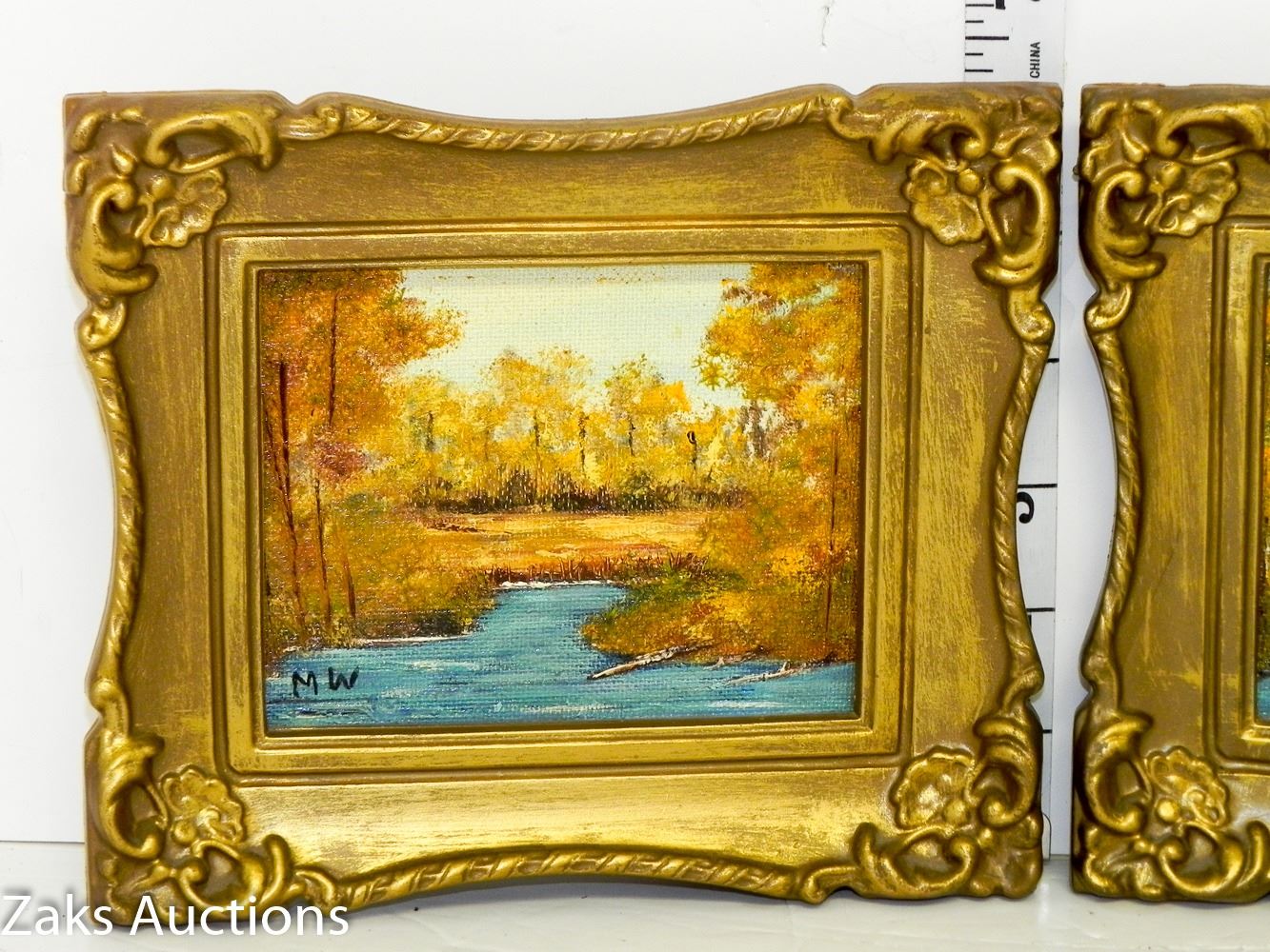 Vintage Gold Framed (2) 1976 Oil Painting on Canvas by Mary Wouties 5" x 7"