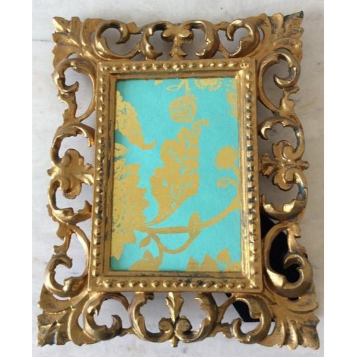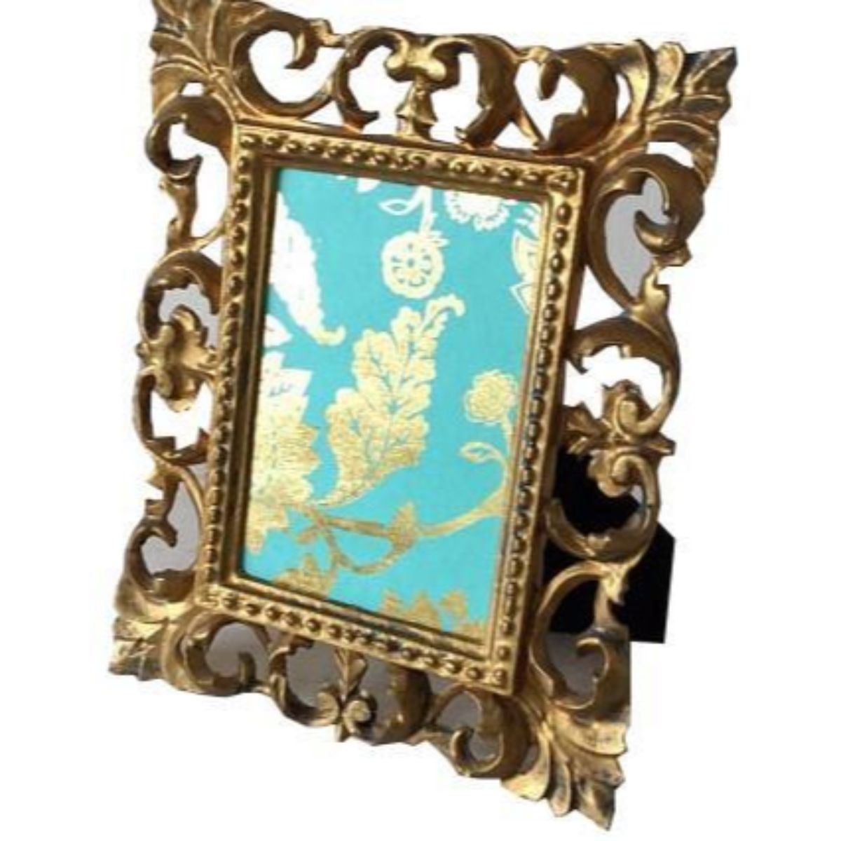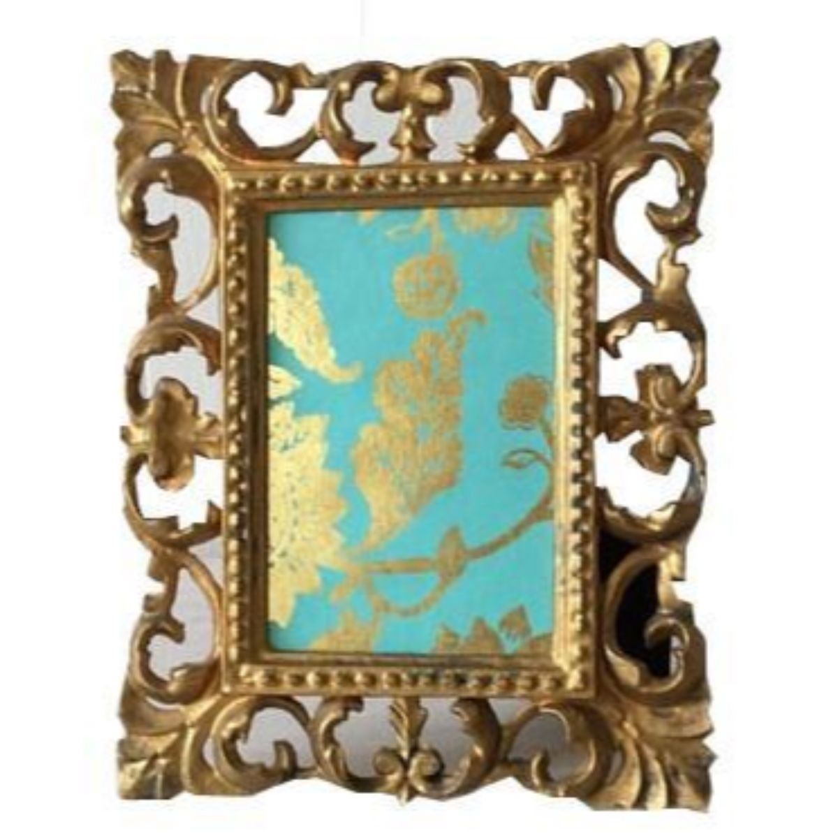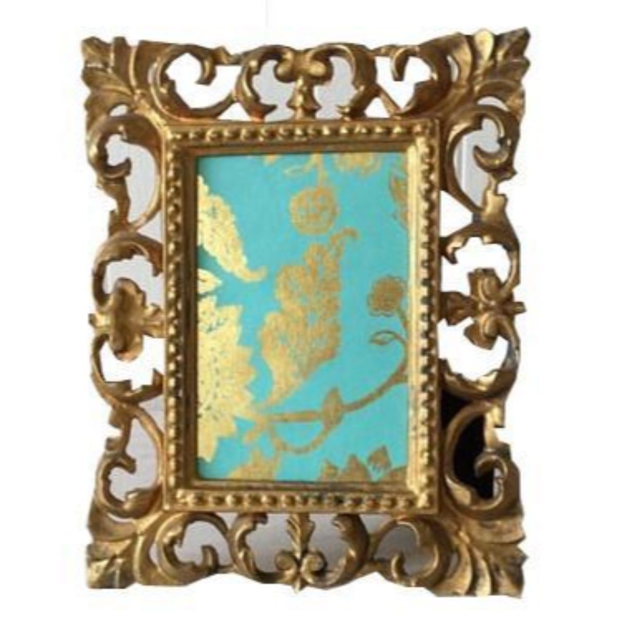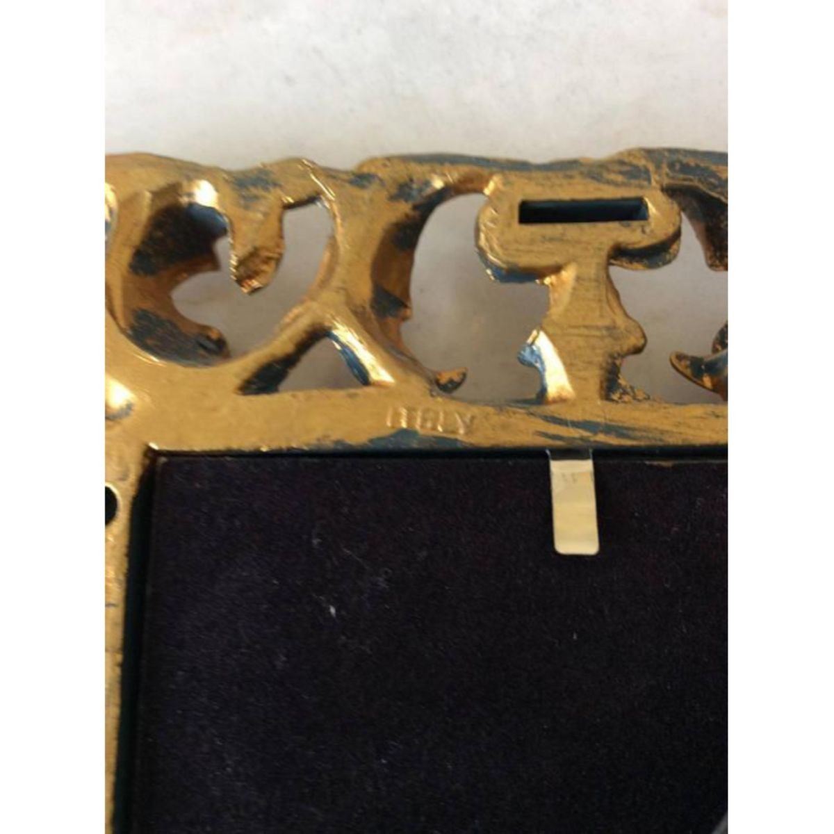 Description: Vintage Gold Ornate Florentine Picture Frame. Fits A 4†X 6†Picture. Has Built On Easel On Back For Propping Vertical Or Horizontal. Great Bookshelf Decor, Tabletop, Or Bedroom Frame. Stamped Italy On Back Of The Frame. In Very Good Vintage Condition! - 10037-031918-ES-86551