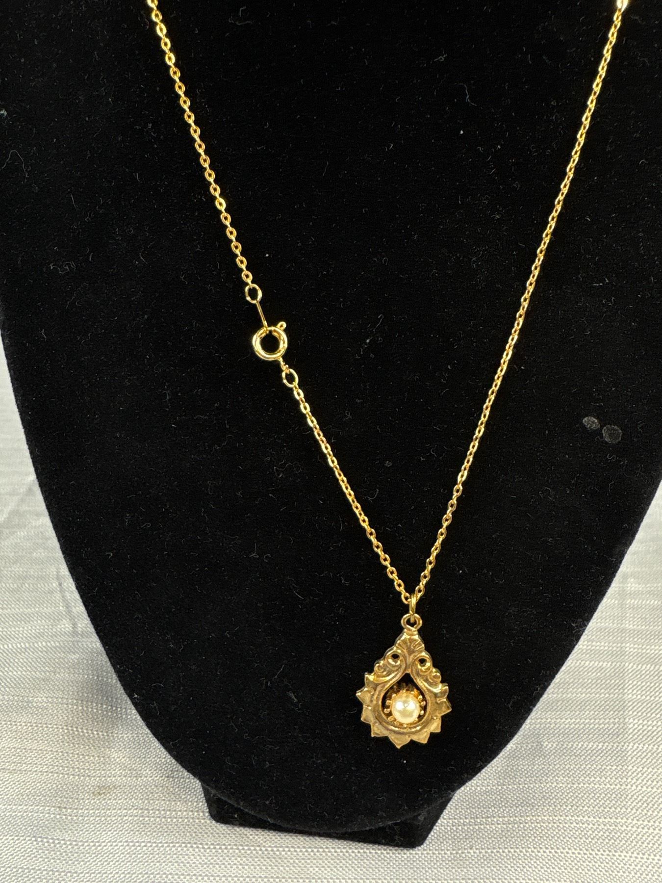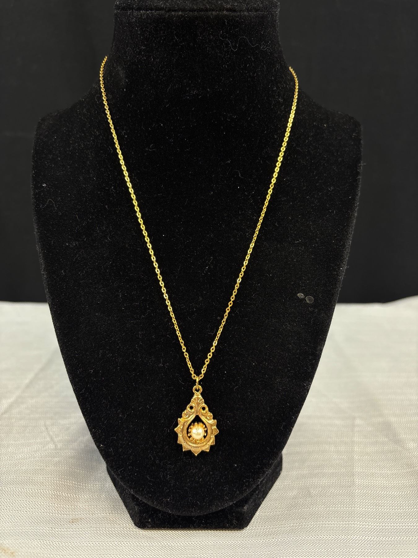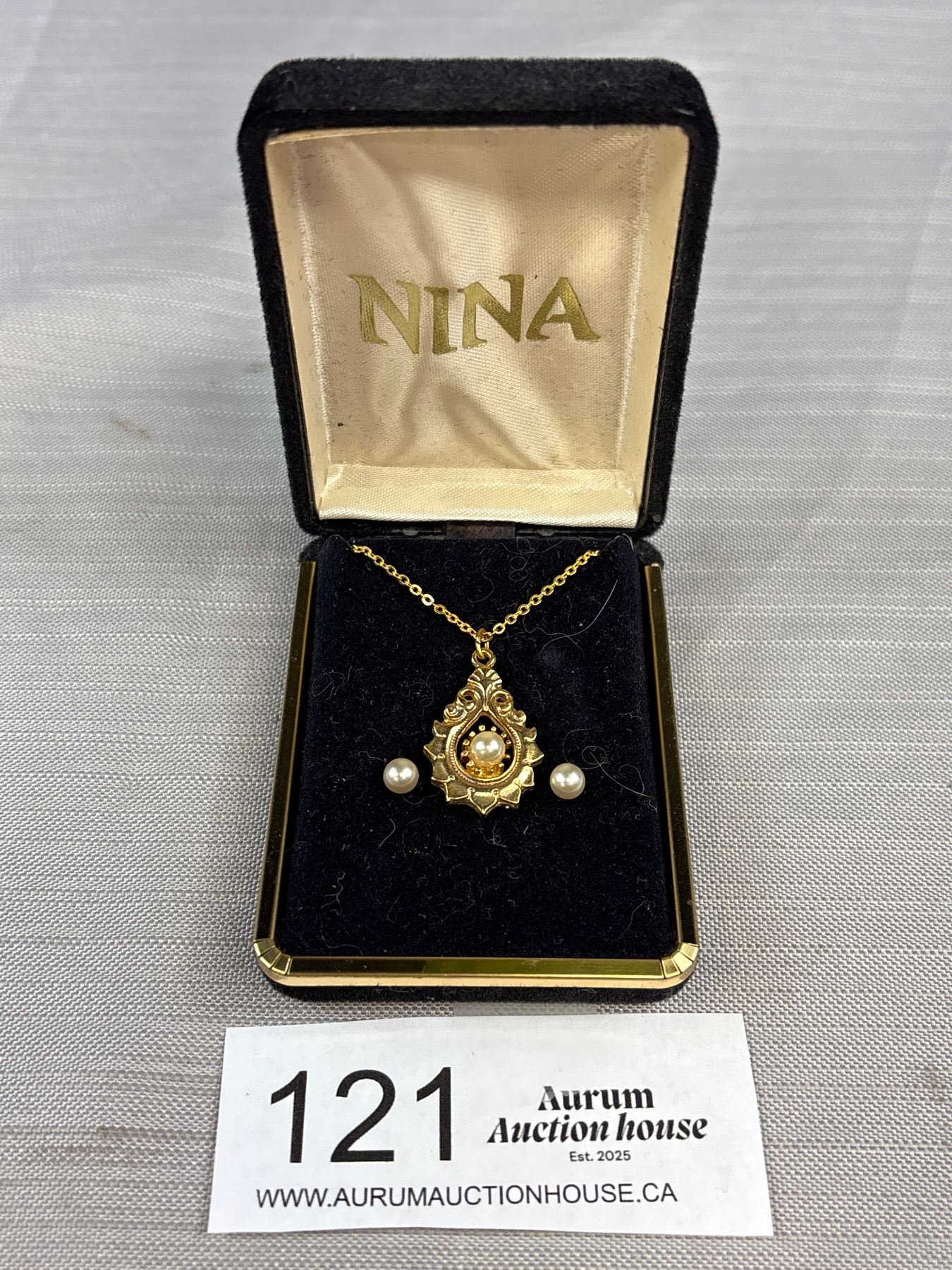 Vintage Gold Pearl Victorian Revival Necklace Earring Set, Very Nice!