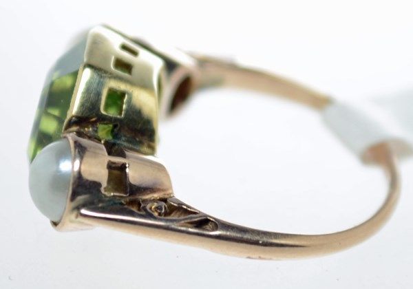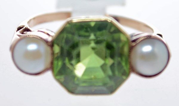 Vintage Gold Peridot and Pearl Ring, Size 3.5 Excellent condition.