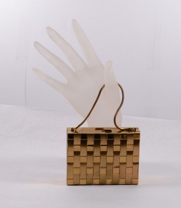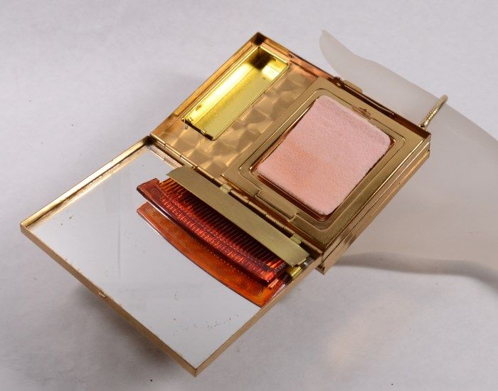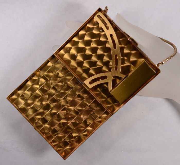 In excellent condition, opens on two sides, keep everything you need in it for a night on the town. Vintage. Measures 4" x 3" Est value $35-$50
