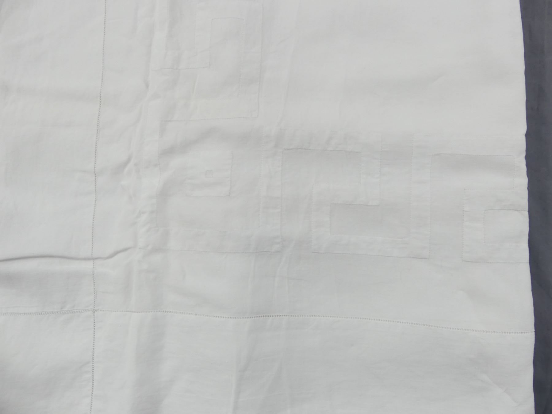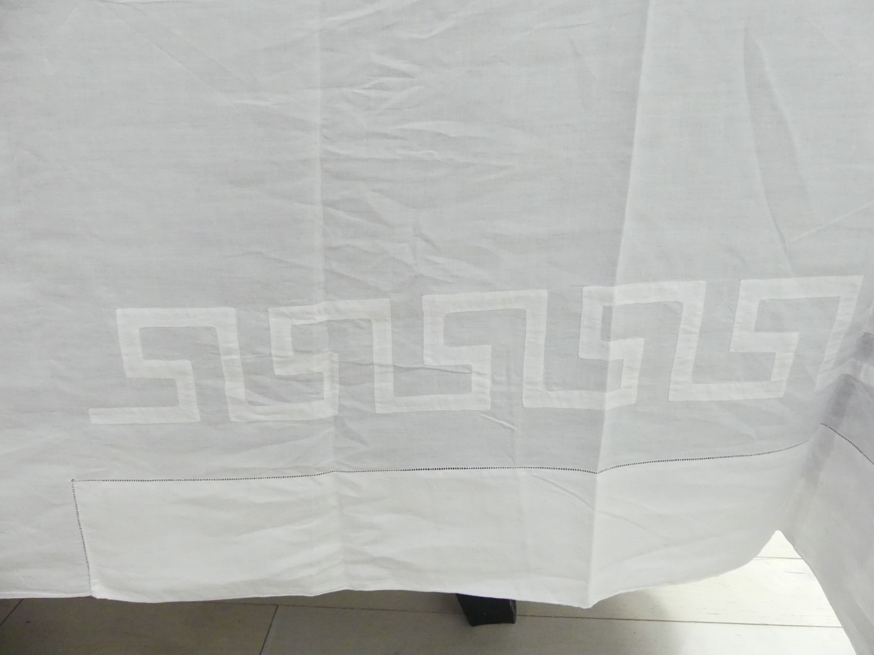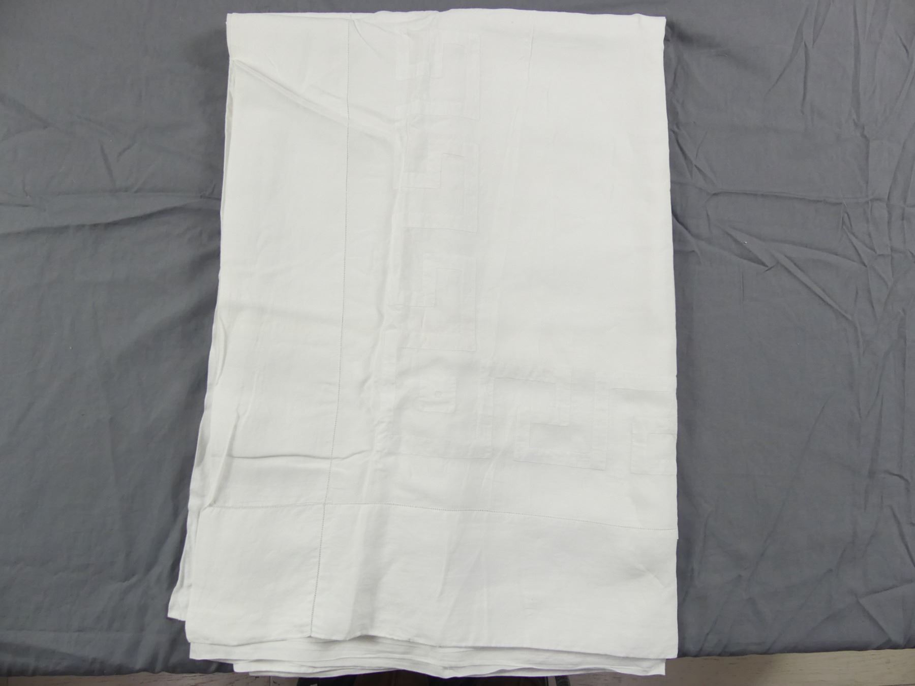Vintage Greek Key Applique Summer Weight White Linen Sheet