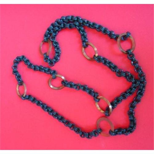 <tr><td>Title:Vintage Green Celluloid Chain w/Brass Rings</td></tr>