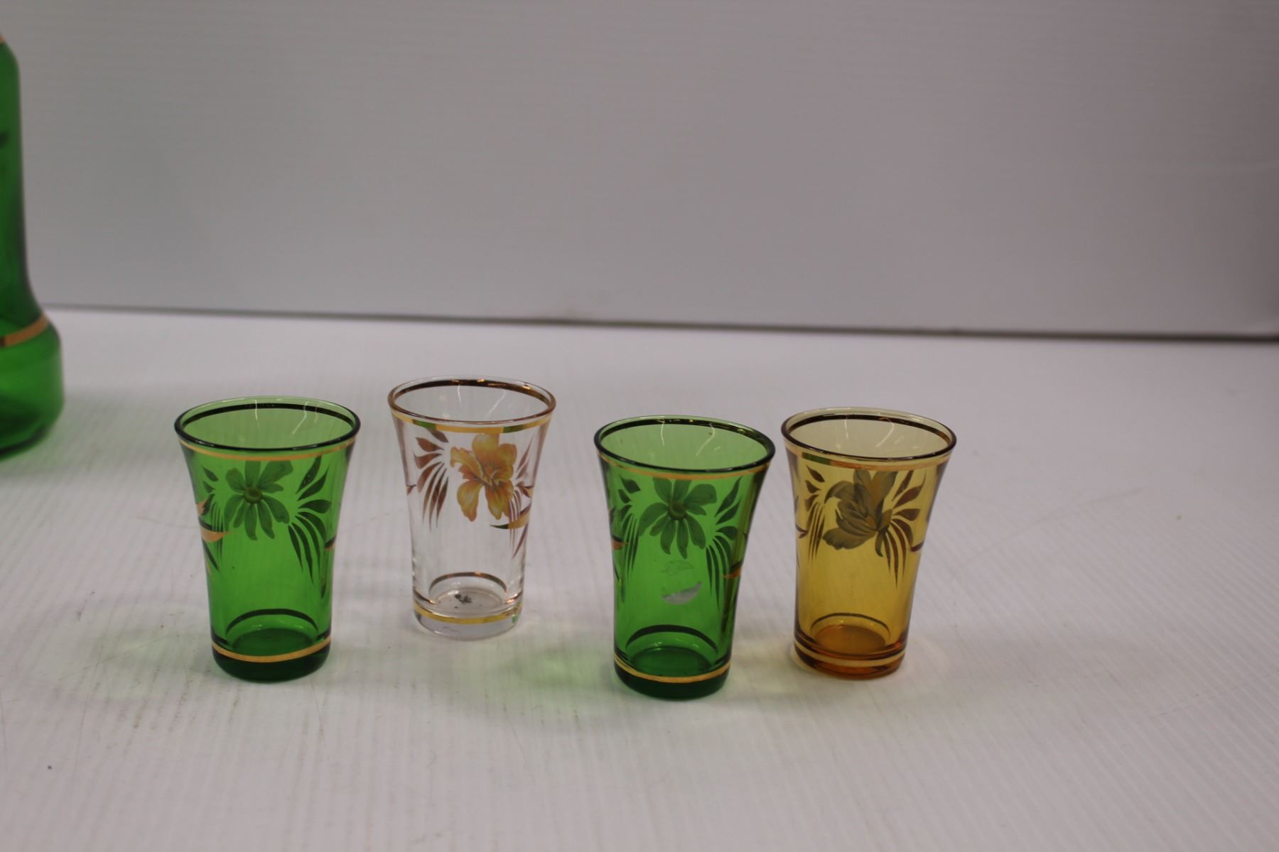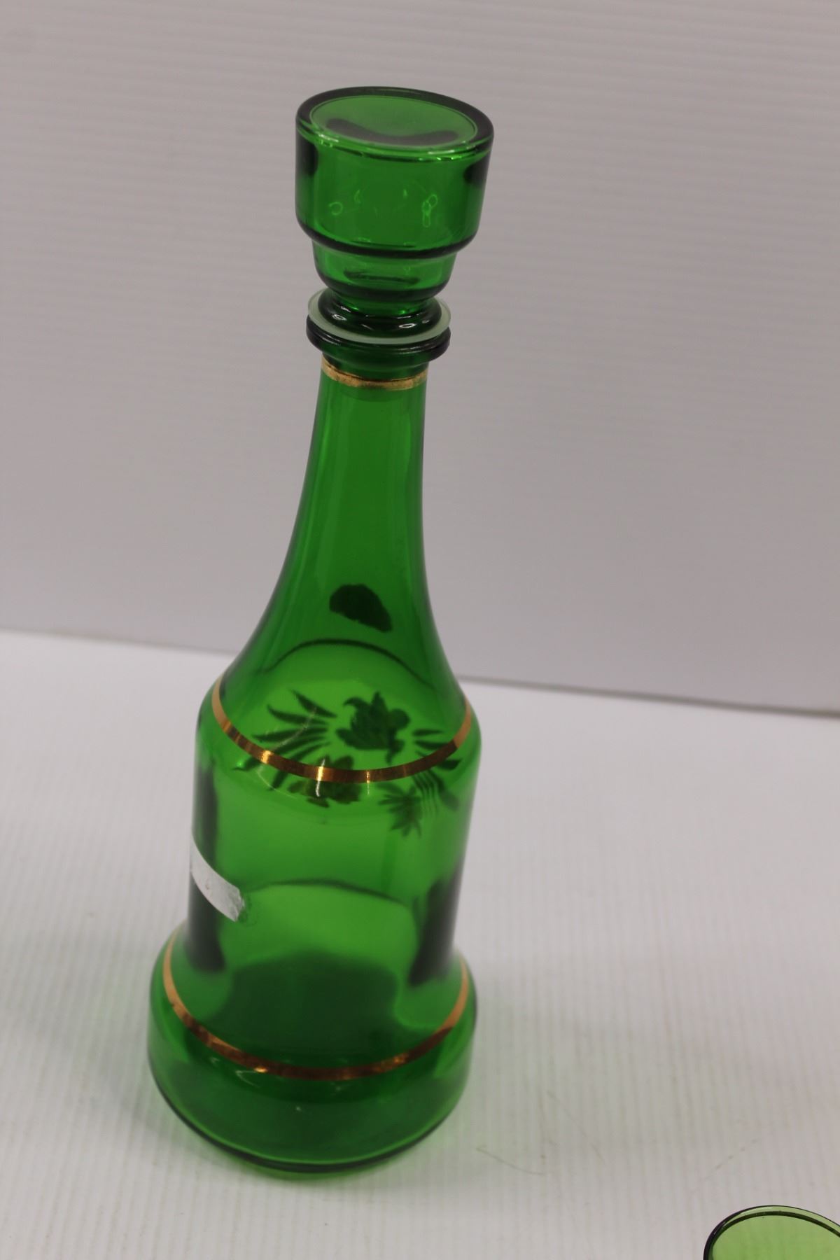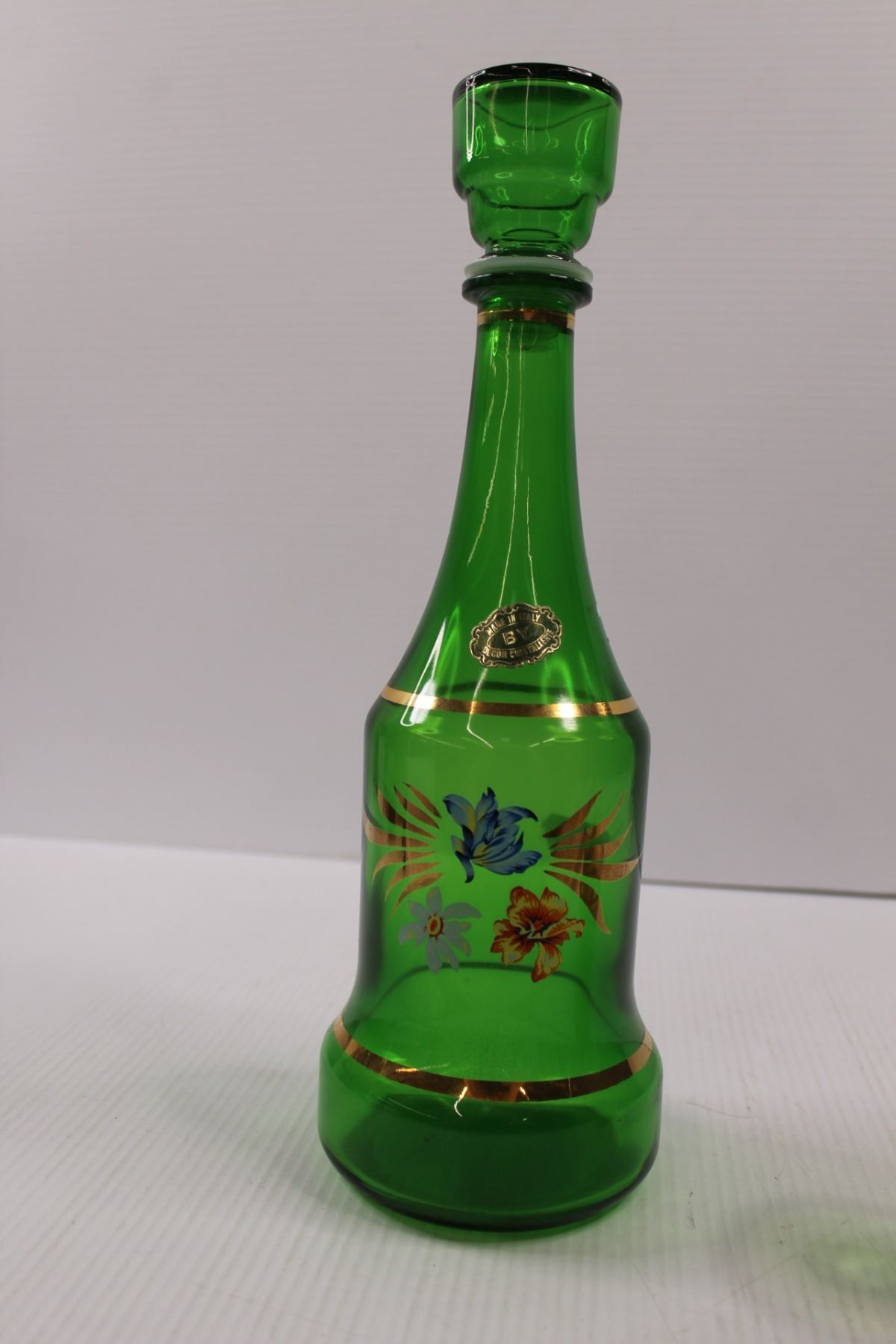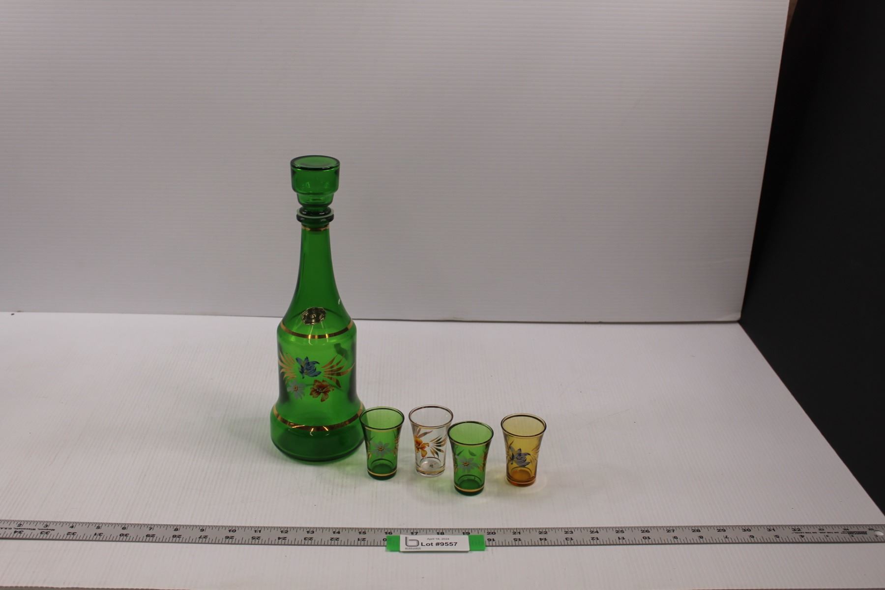Vintage Green Decanter & (4) Shot Glasses - Made in Italy