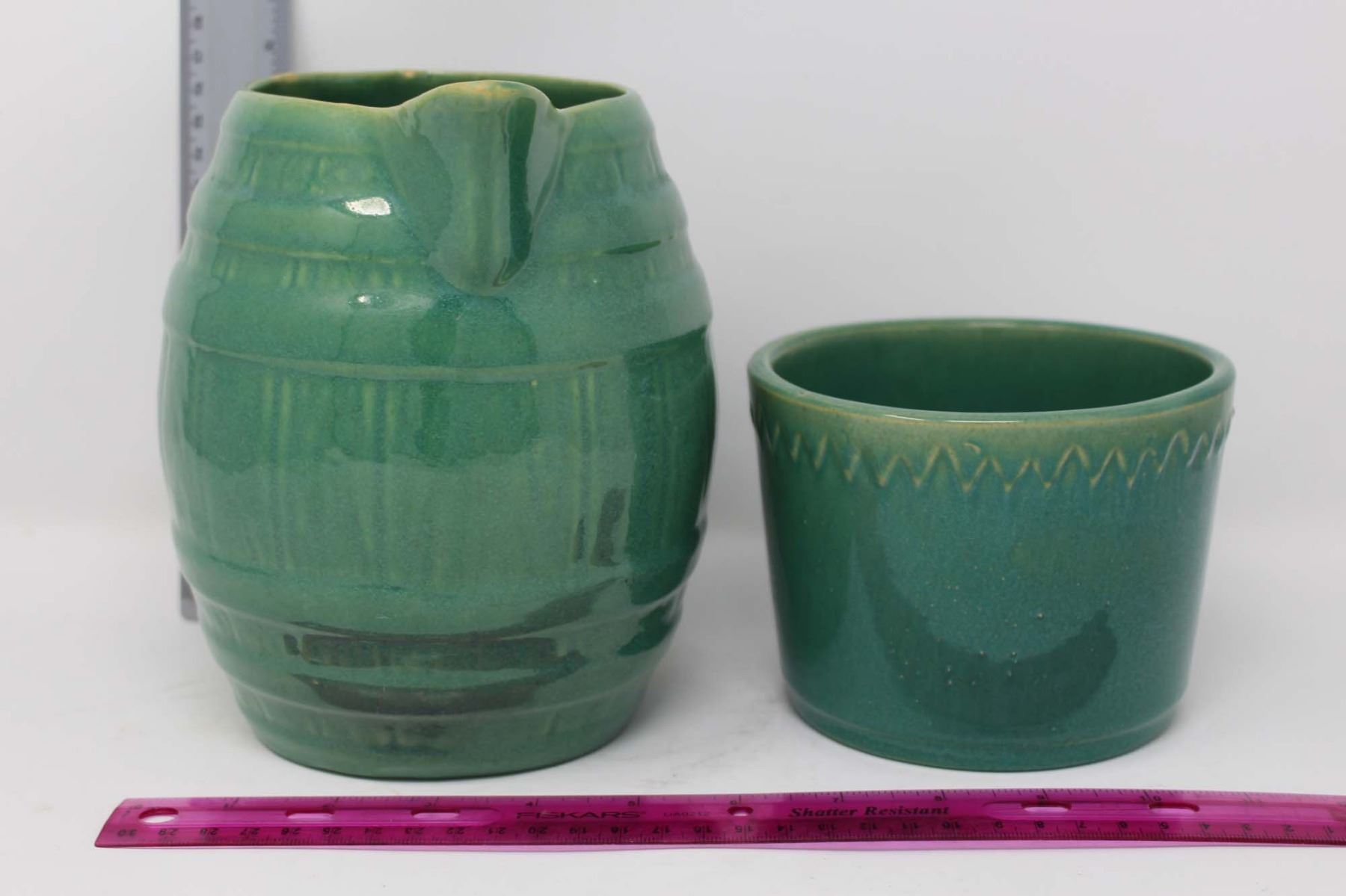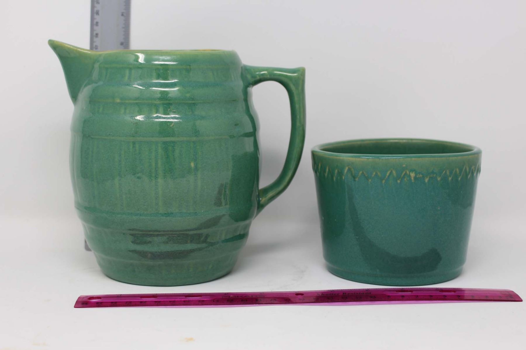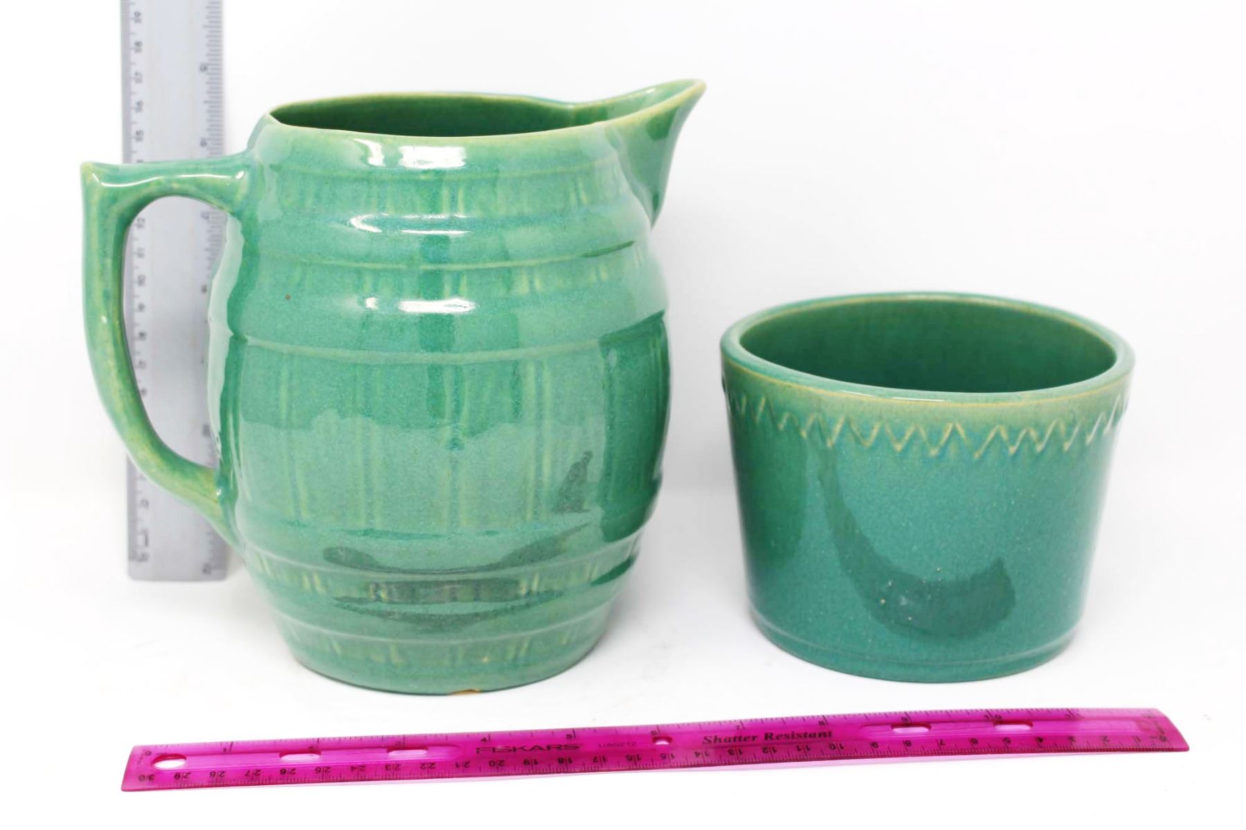Vintage Green Medalta Pitcher & Refrigerator Jar