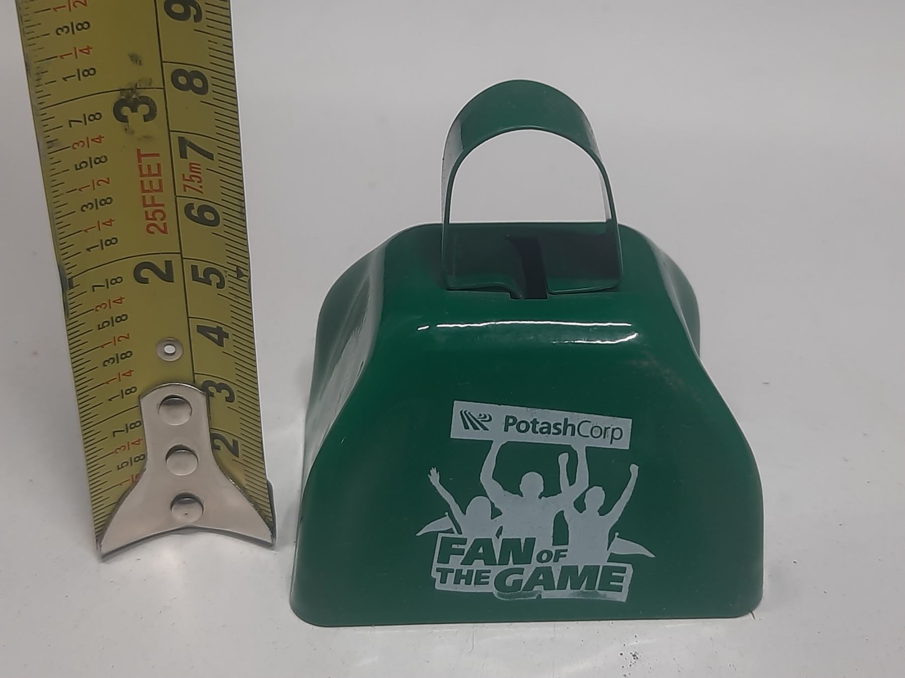 Vintage Green Metal Cowbell - Potash Corp Fan of the Game.