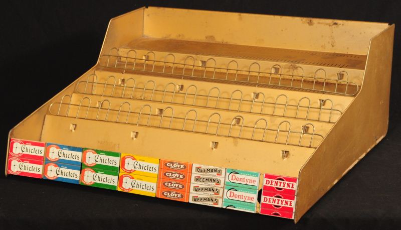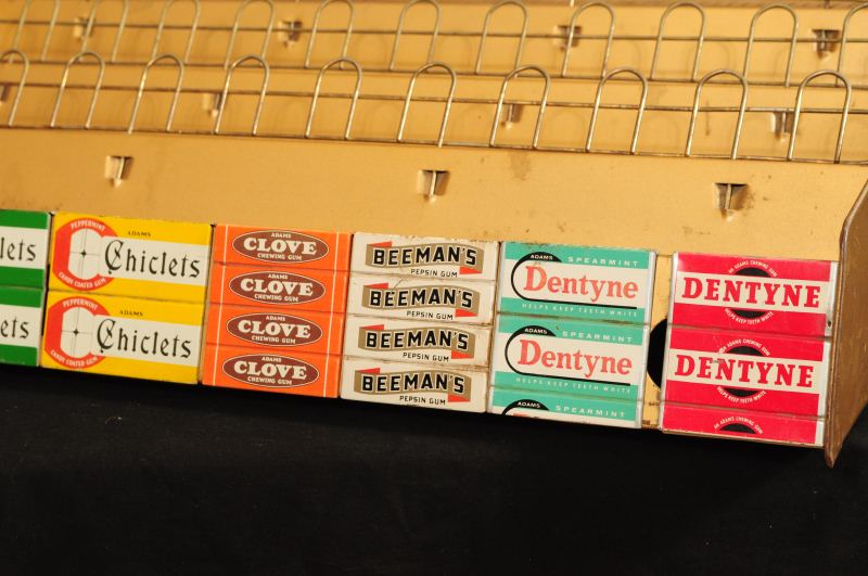 Antique Gum Display, Gums on Display Include Chiclets, Clove, Beemans, Dentyne, Measures 28" x 25"