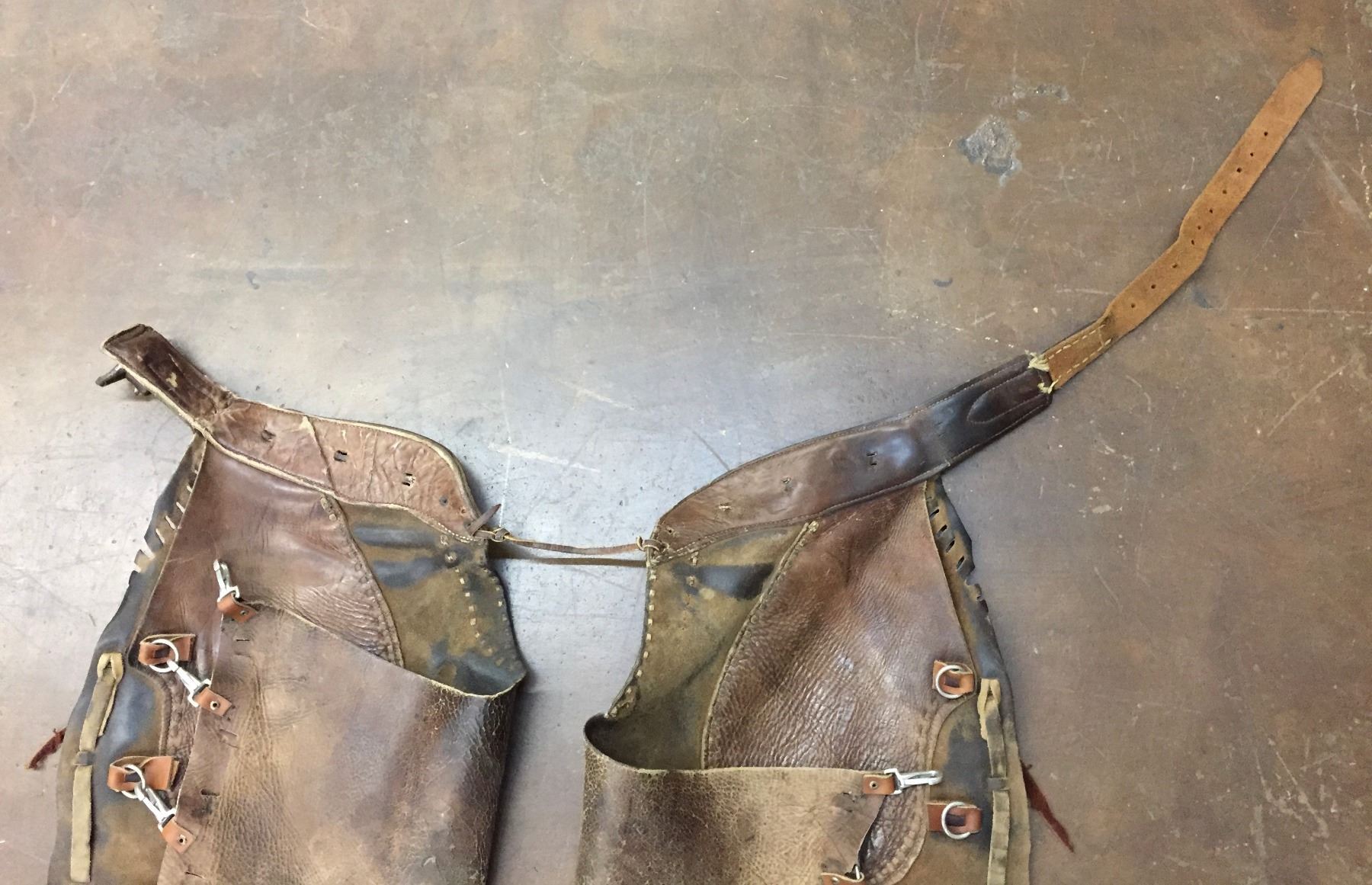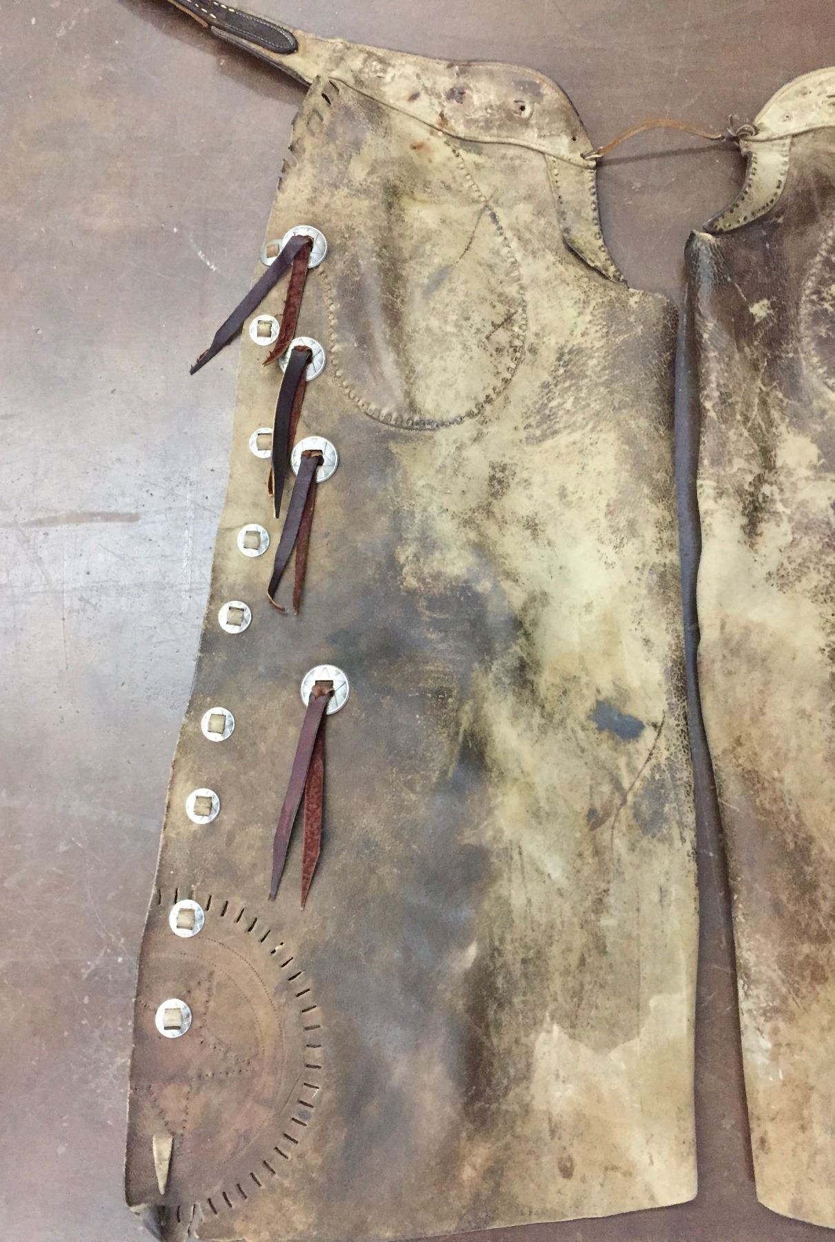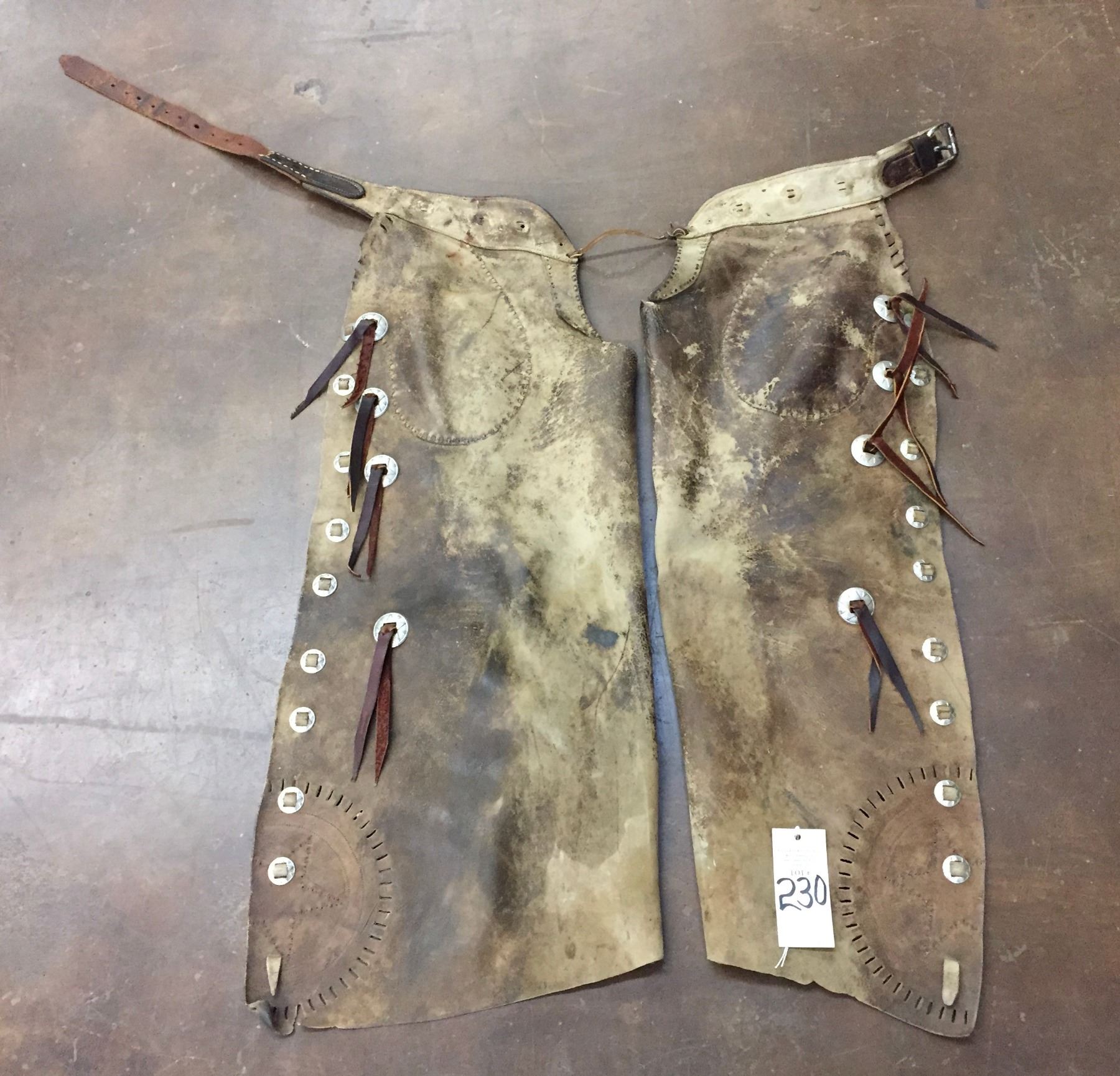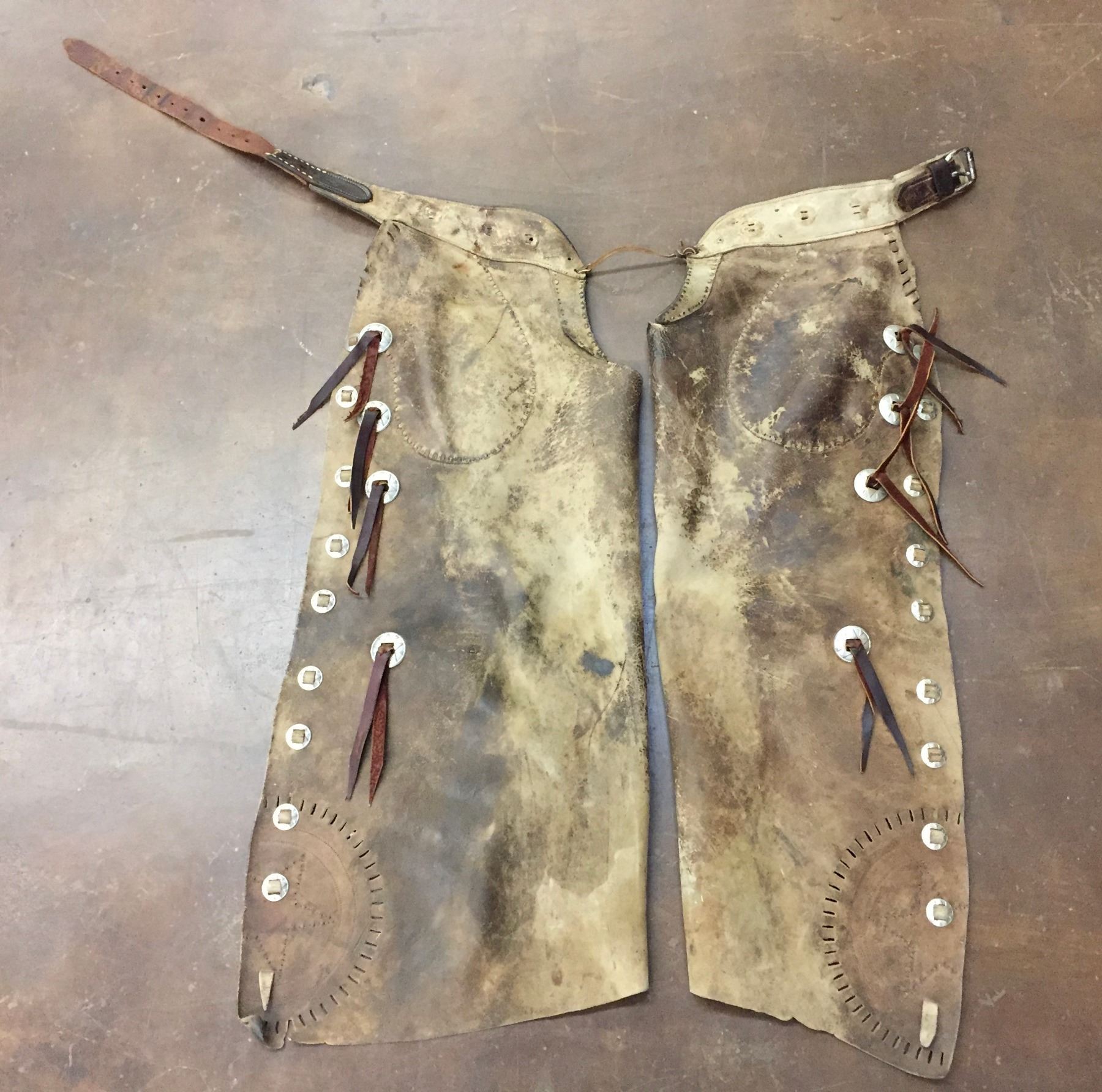Description: Offered for sale in this lot is a pair of vintage, leather chaps by H. H. Heiser of Denver, CO.. Maker: H. H. Heiser. Approx. Age: Early 1900s. Size: 45” belt, 38” length. Condition: Pretty good for their age, wear expected. Please look closely at the pictures - they are an important part of our description. Shipping: There will be a $8 handling / packaging fee for shipping this lot. The actual cost of postage will be added on top of that.