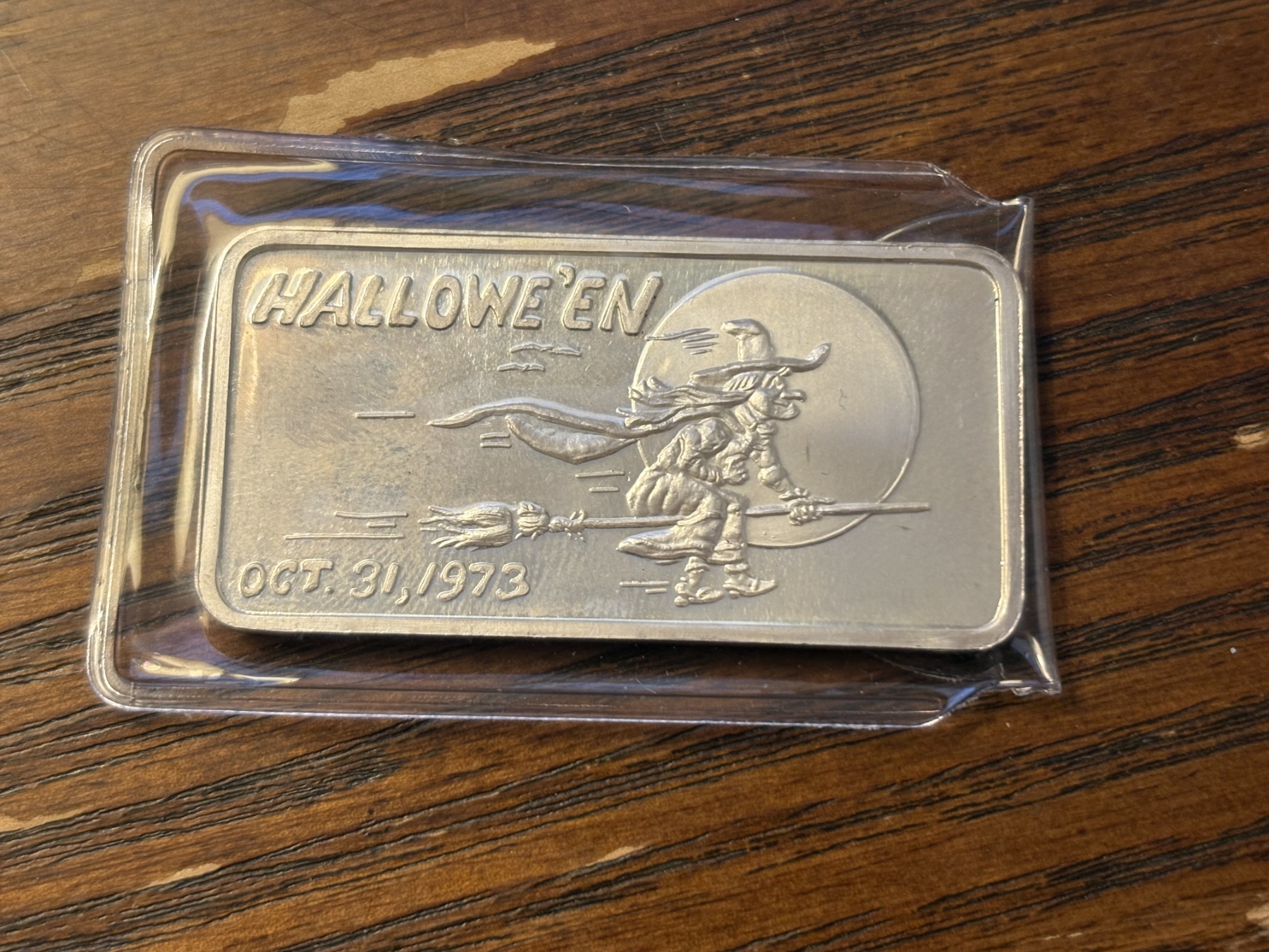Vintage Hallowe'en Witch - 1973 1 Oz. Fine Silver - 2,000 Minted - MGC - In Plastic Packaging