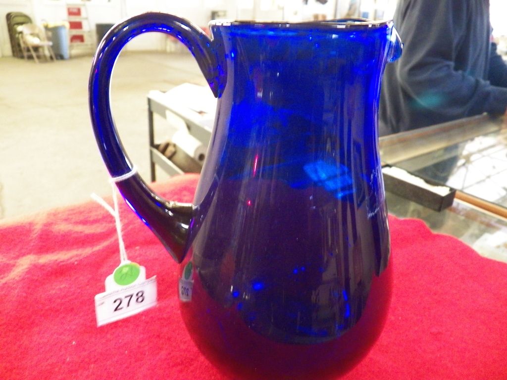 Vintage Hand Blown Colbot Blue Water Pitcher
