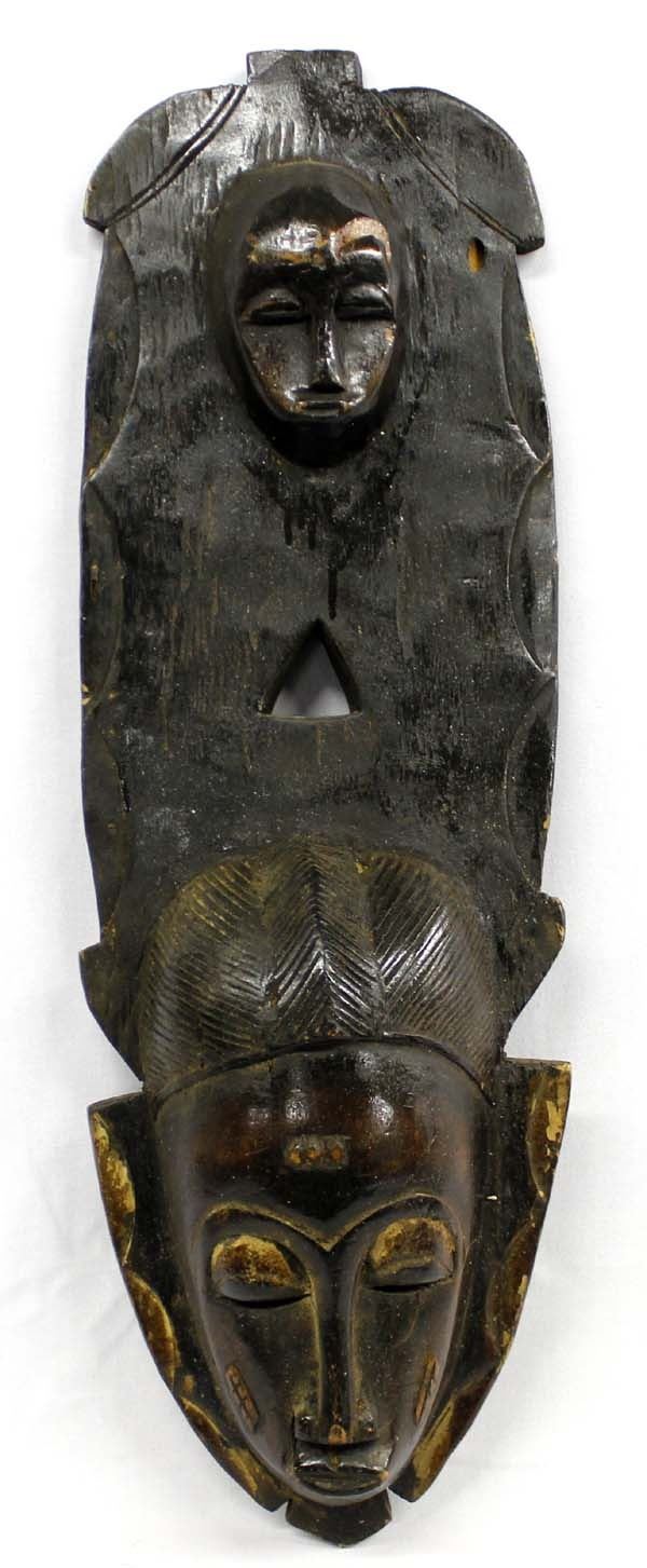 Vintage Hand Carved African Wood Mask, measures 10''W x 27''L