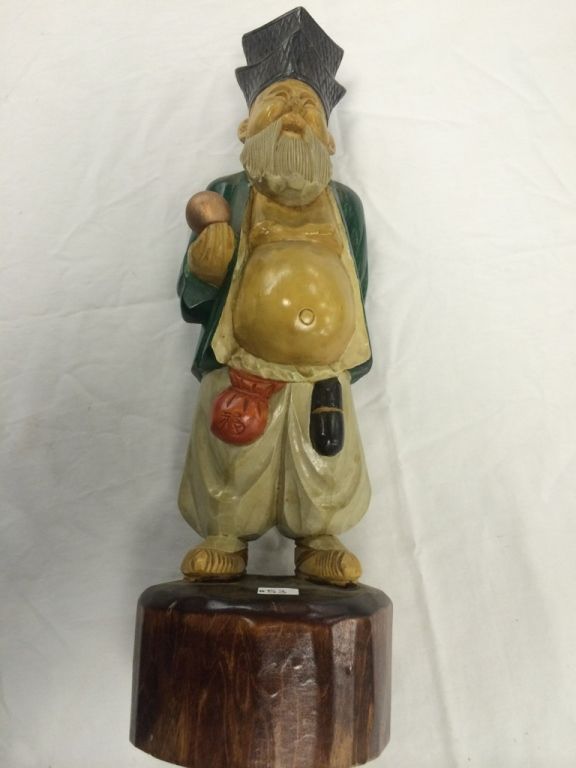Vintage Hand Carved and Hand Painted Chinese Sculpture (17" high)