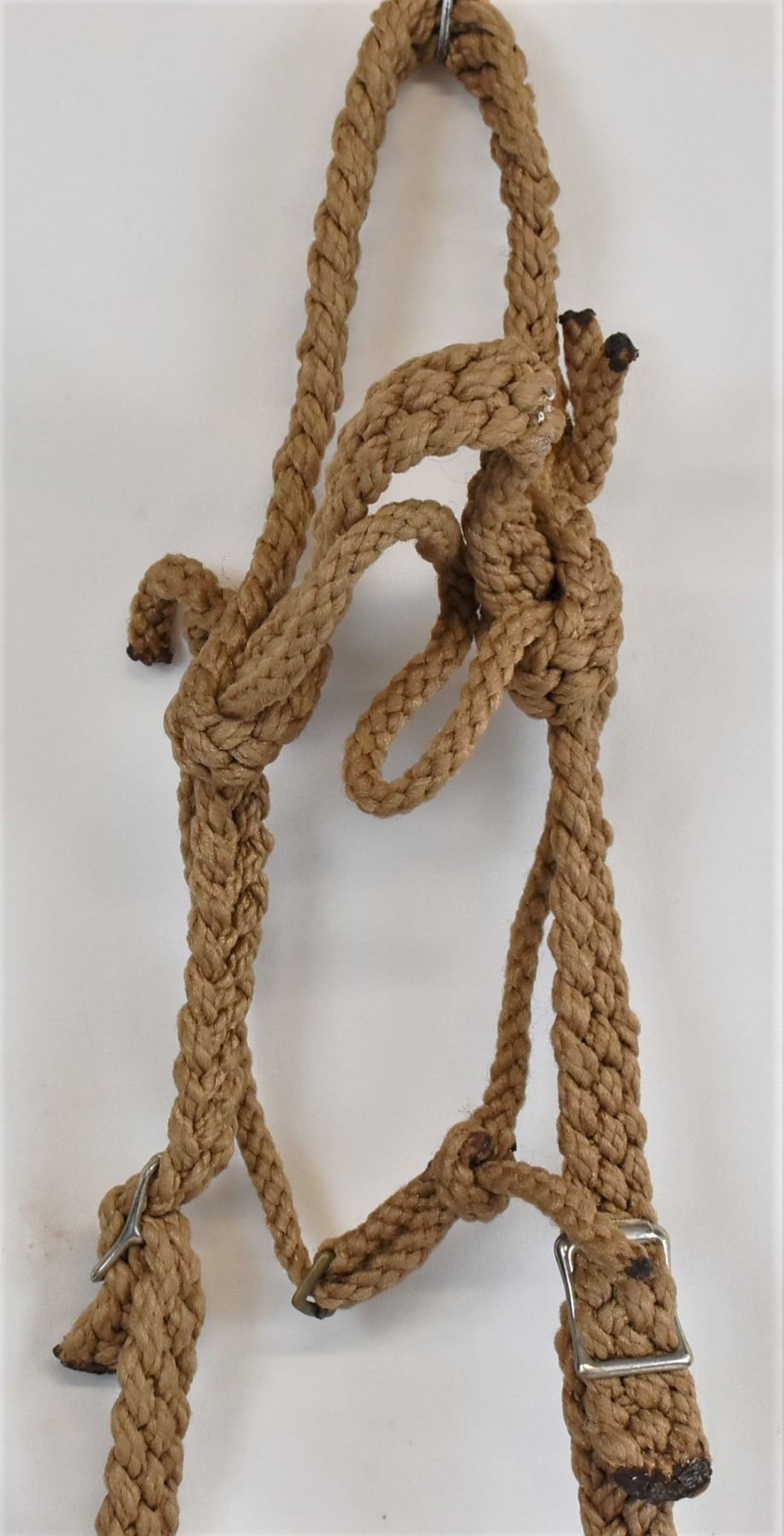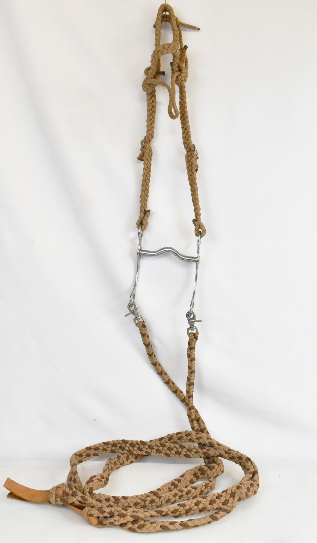 Vintage Hand Crafted Horse Bridle with Bit and Reins, bit measures 5.25''W, made with braided jute