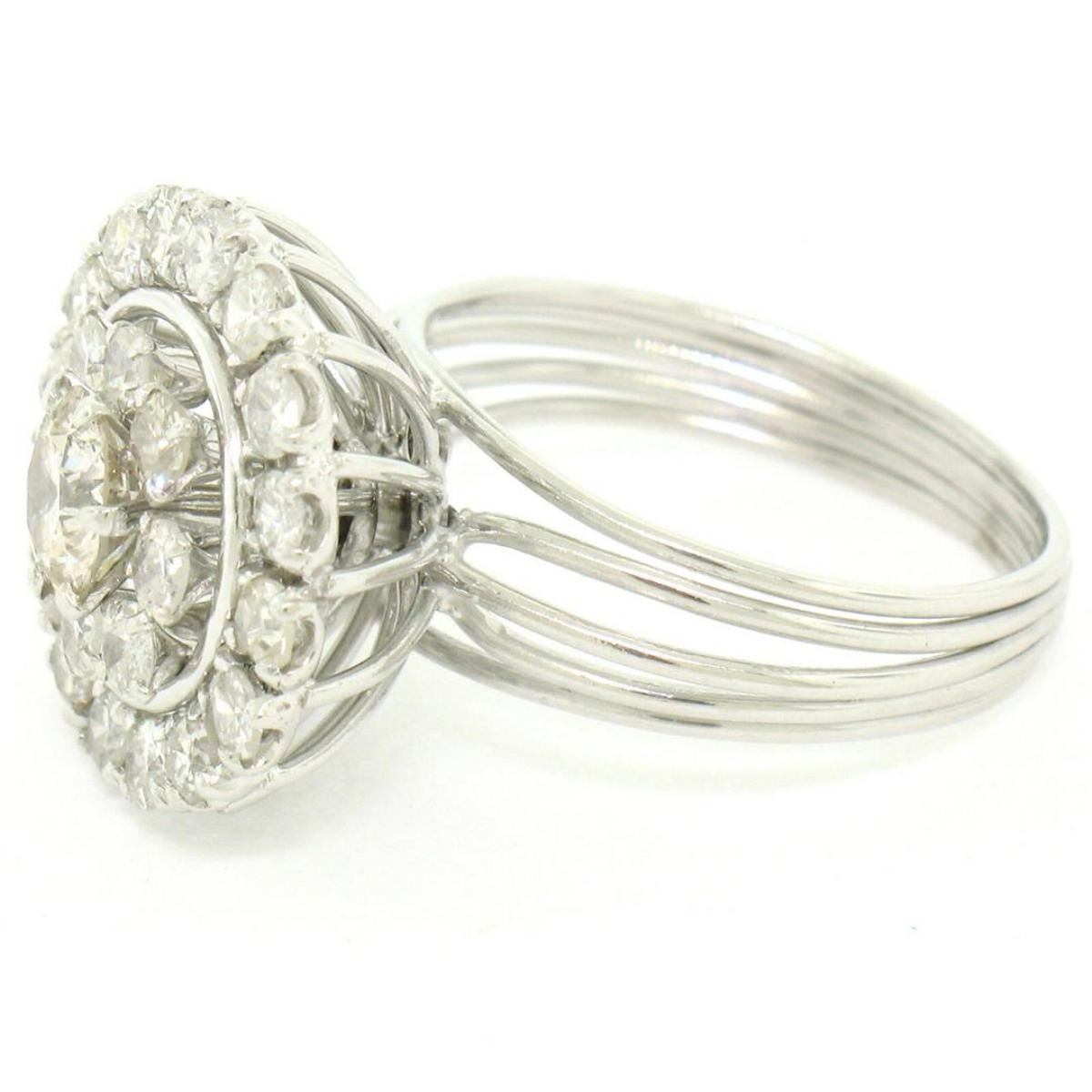 One Hand Made Vintage 18K Gold 1.90ctw Round BRILLIANT Diamond Cluster Cocktail Ring. Item Details: Material: 18K Solid White Gold, Weight: 7.43 Grams, Stone(s): (1) Natural Genuine Diamond - Round Brilliant Cut - Prong Set - Light Champagne Color - VS2 Clarity - 5.70mm, 0.70ct (approx.), (24) Natural Genuine Diamonds - Older Round Cut - Prong Set - G to I Color - VS1/SI2 Clarity - 1.20ctw (approx.), Total Carat Weight: 1.90 (approx.), Ring Size: 6.5 , Ring Width: 16.07mm, Ring Height: 11.27mm rise off the finger Condition: Vintage, hand made ring. Excellent condition!