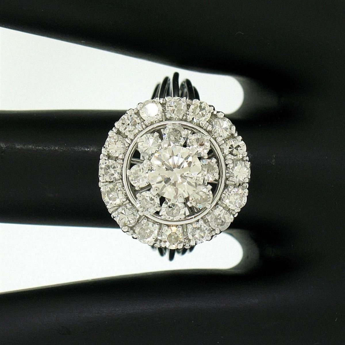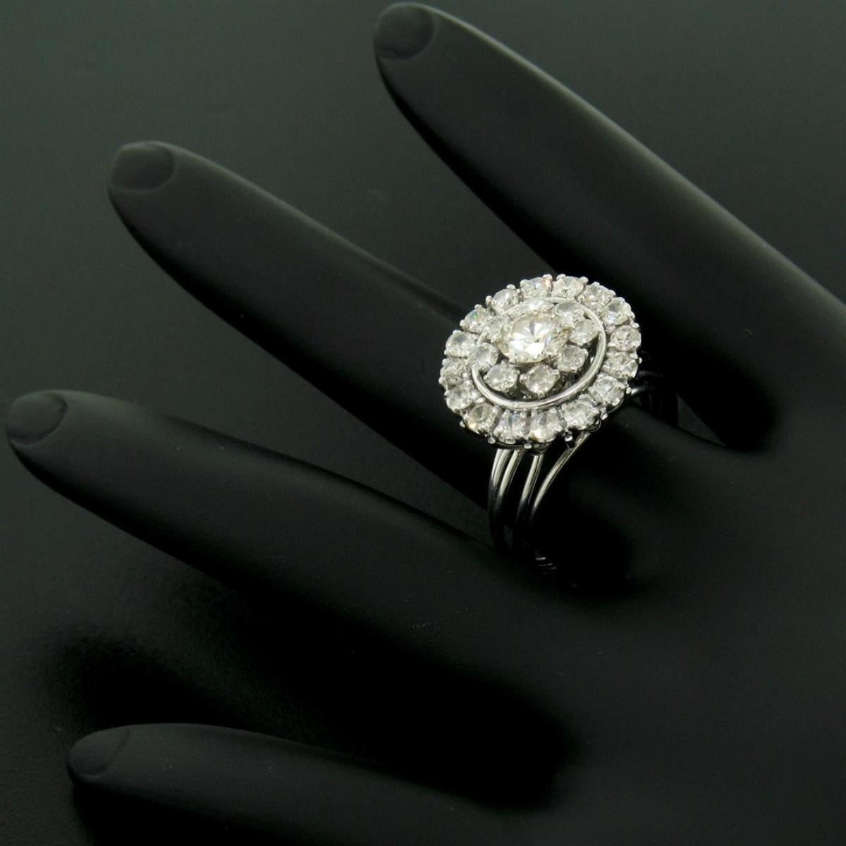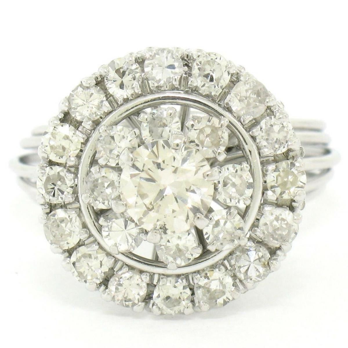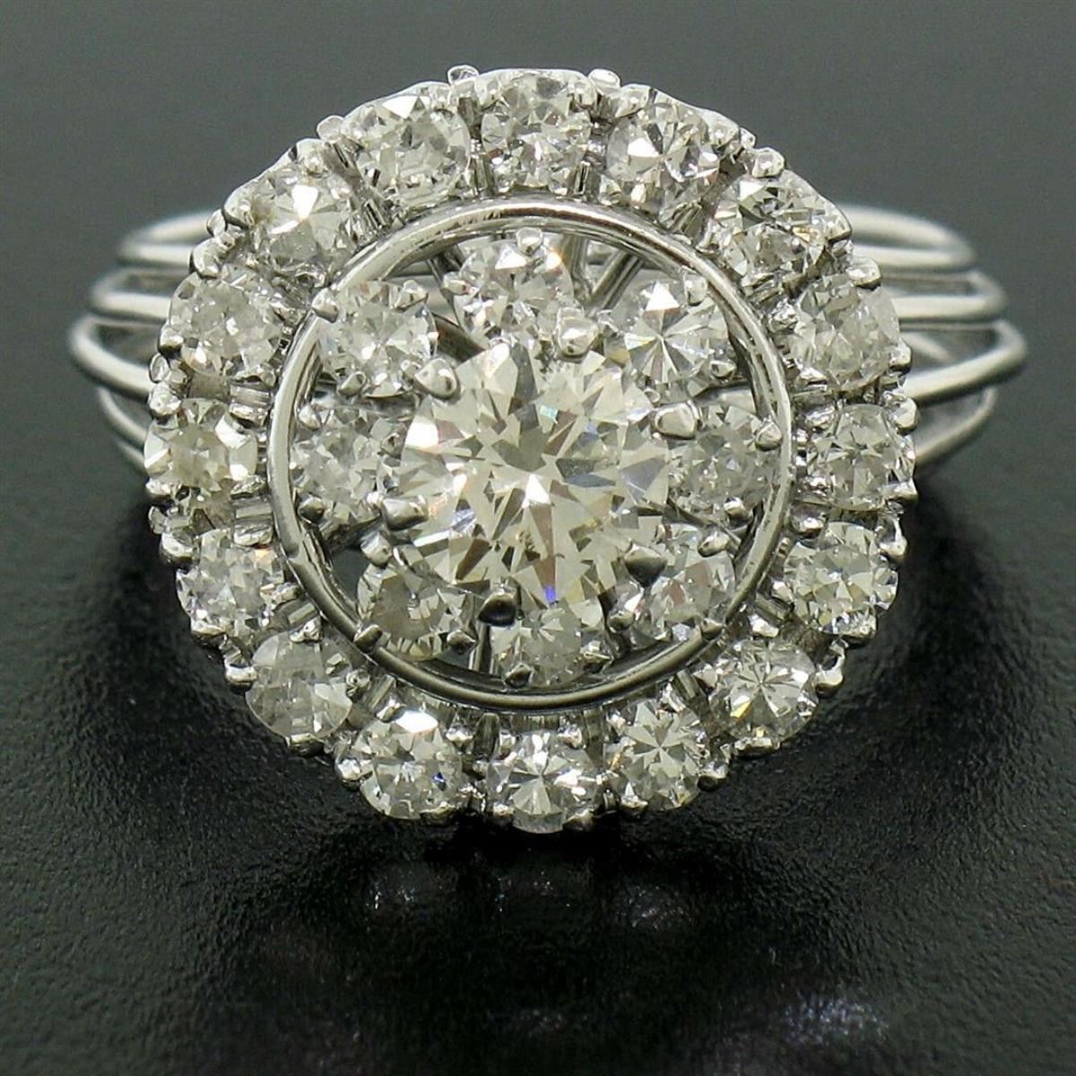 One Hand Made Vintage 18K Gold 1.90ctw Round BRILLIANT Diamond Cluster Cocktail Ring. Item Details: Material: 18K Solid White Gold, Weight: 7.43 Grams, Stone(s): (1) Natural Genuine Diamond - Round Brilliant Cut - Prong Set - Light Champagne Color - VS2 Clarity - 5.70mm, 0.70ct (approx.), (24) Natural Genuine Diamonds - Older Round Cut - Prong Set - G to I Color - VS1/SI2 Clarity - 1.20ctw (approx.), Total Carat Weight: 1.90 (approx.), Ring Size: 6.5 , Ring Width: 16.07mm, Ring Height: 11.27mm rise off the finger Condition: Vintage, hand made ring. Excellent condition!