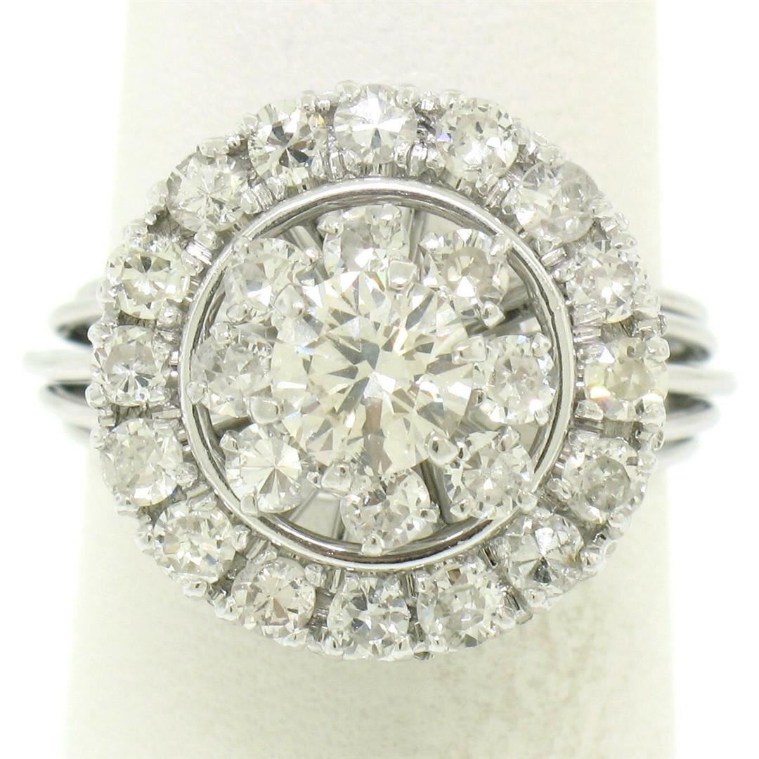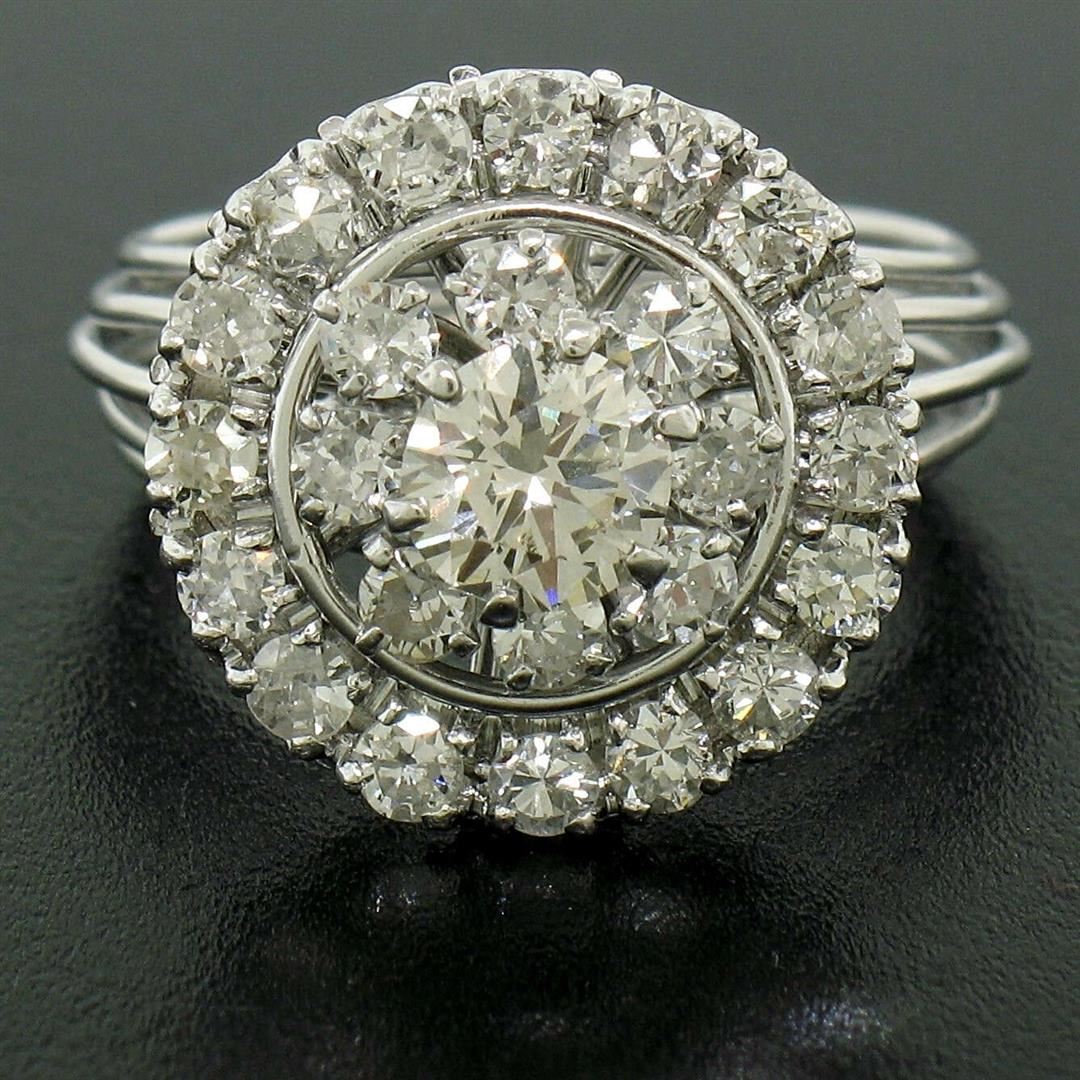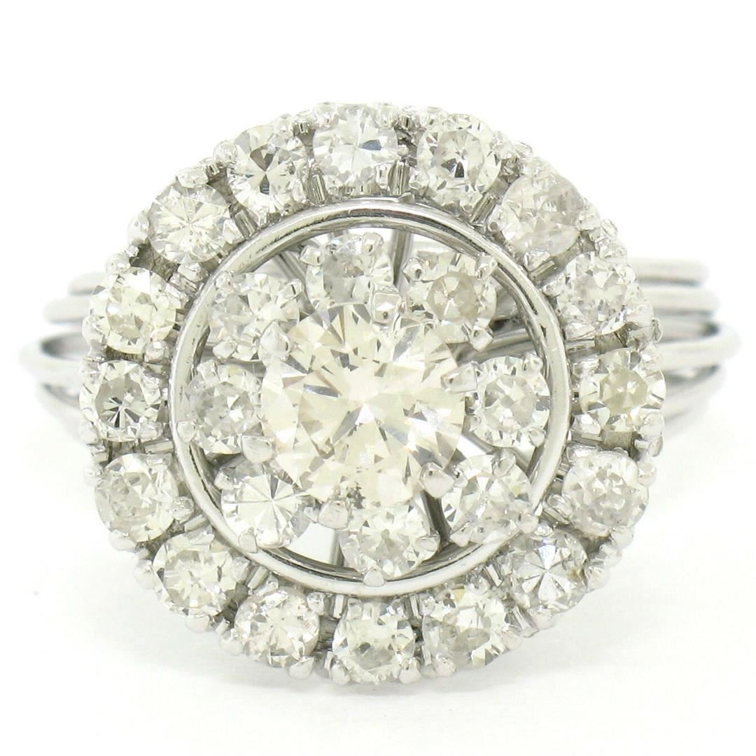 One Hand Made Vintage 18K Gold 1.90 ctw Round BRILLIANT Diamond Cluster Cocktail Ring. Item Details: Material: 18K Solid White Gold, Weight: 7.43 Grams, Stone(s): (1) Natural Genuine Diamond - Round Brilliant Cut - Prong Set - Light Champagne Color - VS2 Clarity - 5.70mm, 0.70 ct (approx.), (24) Natural Genuine Diamonds - Older Round Cut - Prong Set - G to I Color - VS1/SI2 Clarity - 1.20 ctw (approx.), Total Carat Weight: 1.90 (approx.), Ring Size: 6.5 , Ring Width: 16.07mm, Ring Height: 11.27mm rise off the finger Condition: Vintage, hand made ring. Excellent condition!