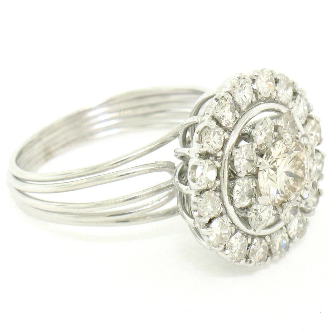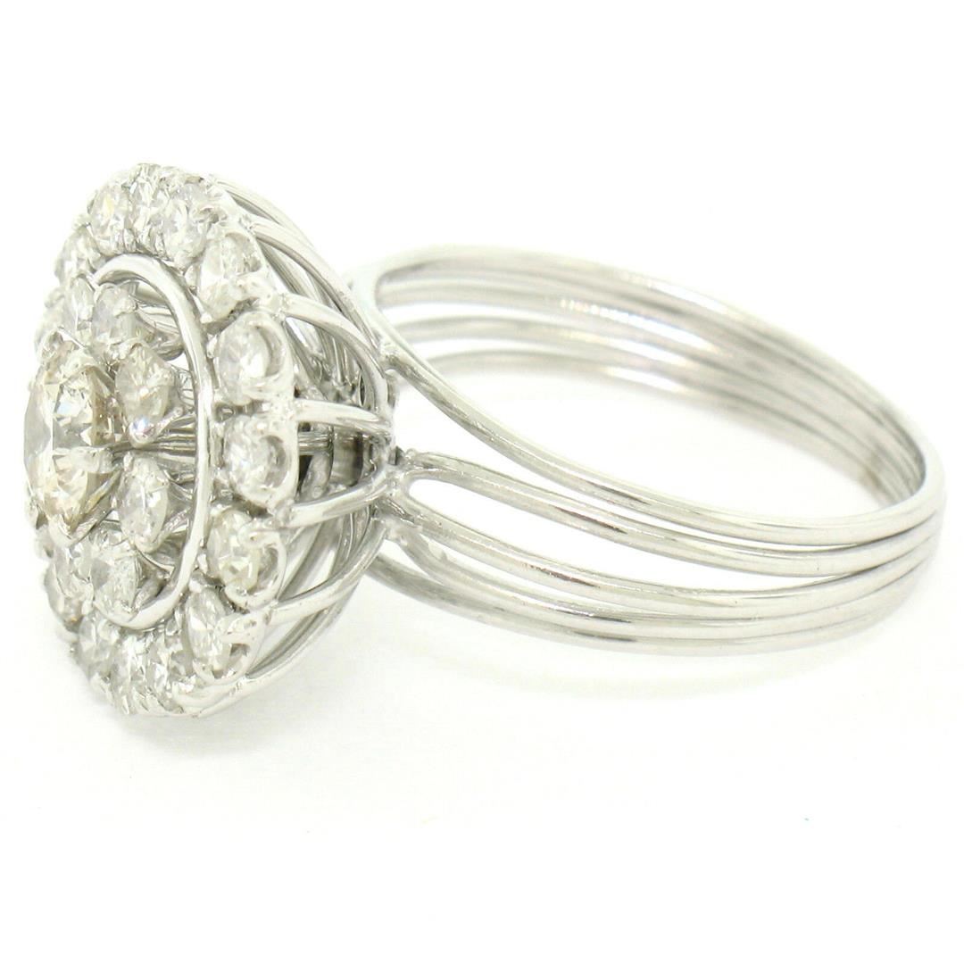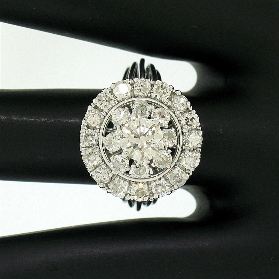 One Hand Made Vintage 18K Gold 1.90 ctw Round BRILLIANT Diamond Cluster Cocktail Ring. Item Details: Material: 18K Solid White Gold, Weight: 7.43 Grams, Stone(s): (1) Natural Genuine Diamond - Round Brilliant Cut - Prong Set - Light Champagne Color - VS2 Clarity - 5.70mm, 0.70 ct (approx.), (24) Natural Genuine Diamonds - Older Round Cut - Prong Set - G to I Color - VS1/SI2 Clarity - 1.20 ctw (approx.), Total Carat Weight: 1.90 (approx.), Ring Size: 6.5 , Ring Width: 16.07mm, Ring Height: 11.27mm rise off the finger Condition: Vintage, hand made ring. Excellent condition!