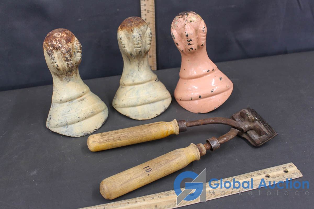 Vintage Hand Operated Sheep Shears & (3) Claw Feets for Claw Foot Tub