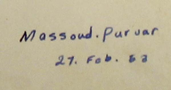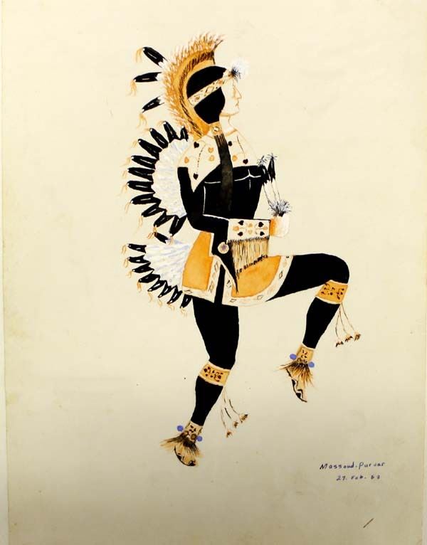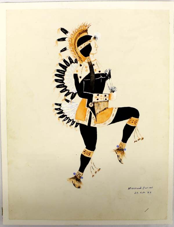 Vintage Hand Painted Drawing by Massoud.Pur var, measures 9'' x 11.5'', Native American Motif, hand signed and dated 27. Feb. 53