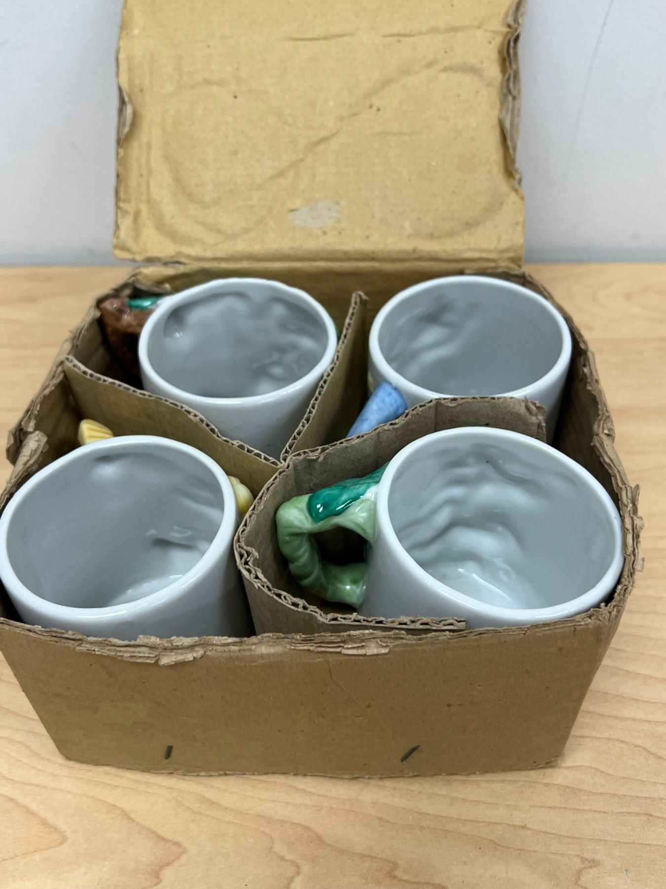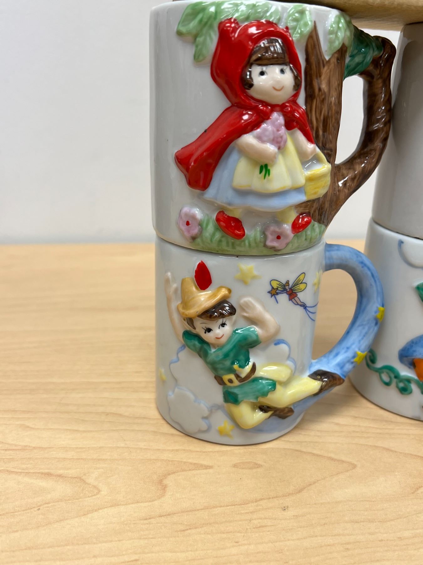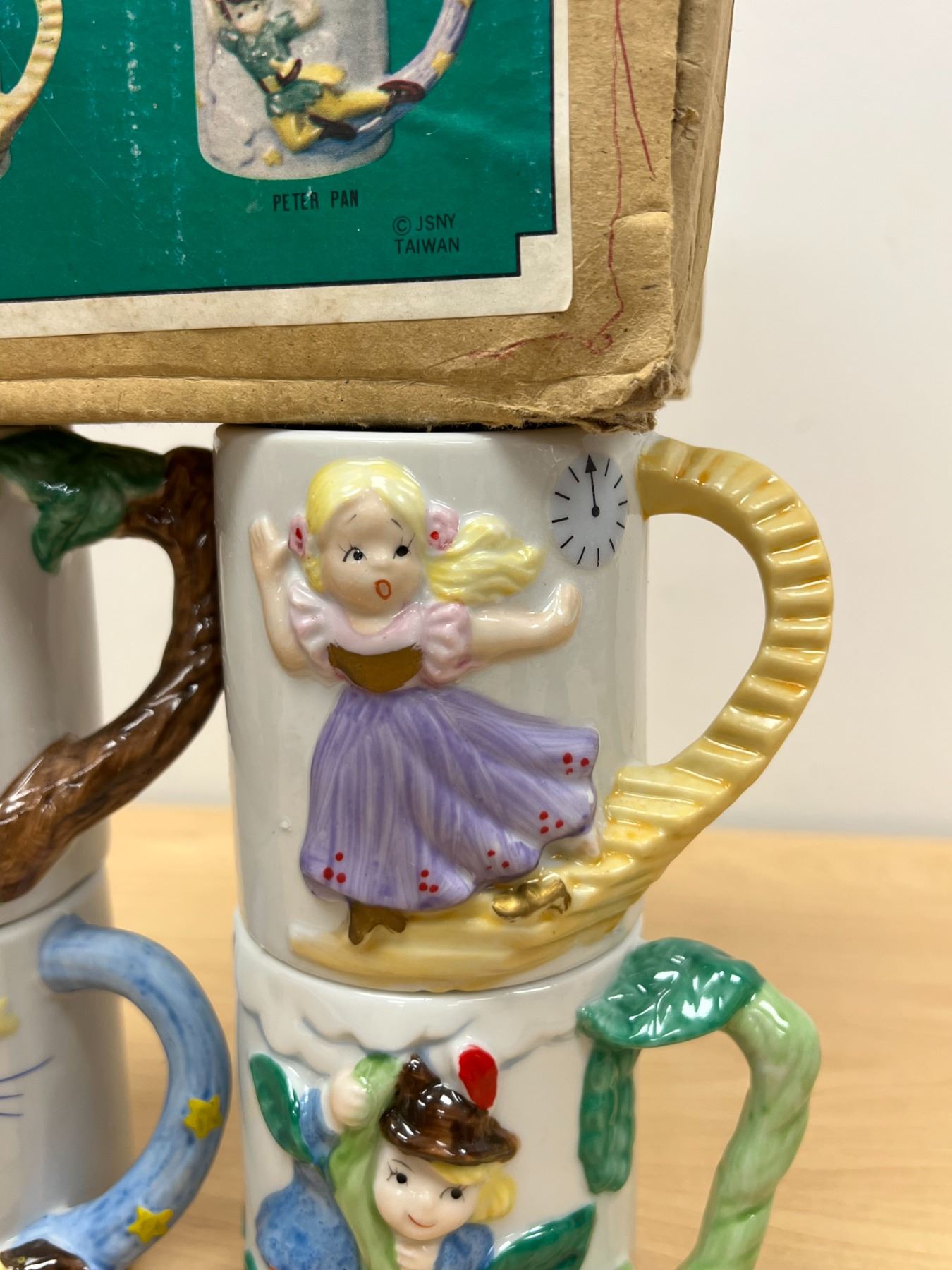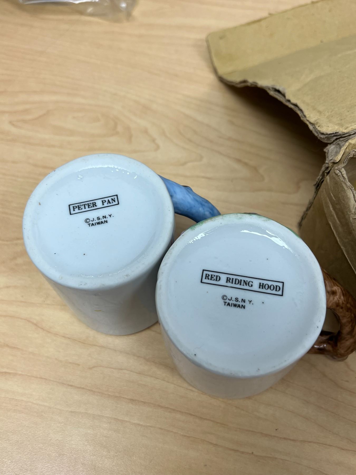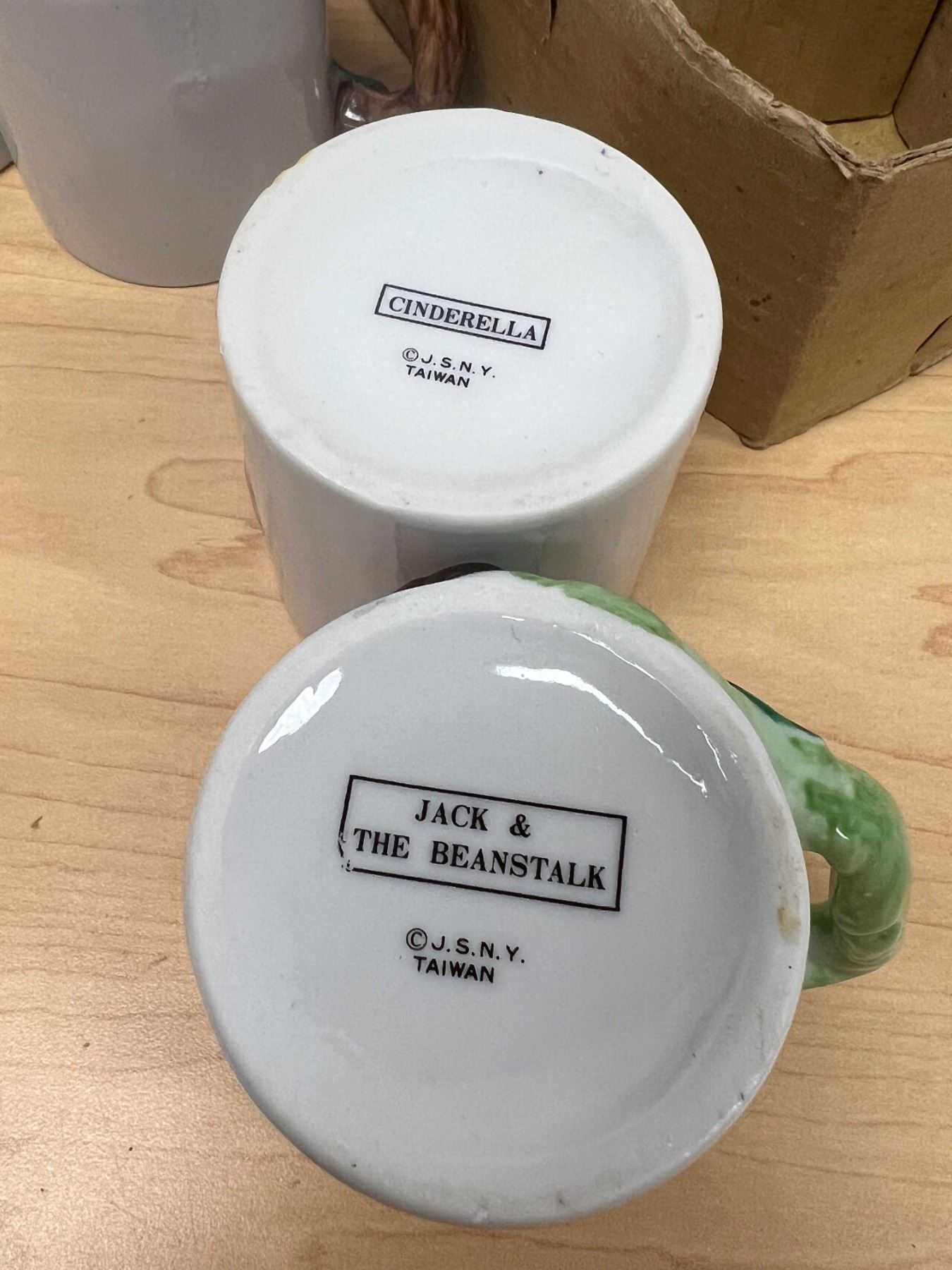 Vintage Hand Painted Porcelain Storybook Mugs in Original Box - Cinderella / Peter Pan / Red Riding Hood / Jack & The beanstalk