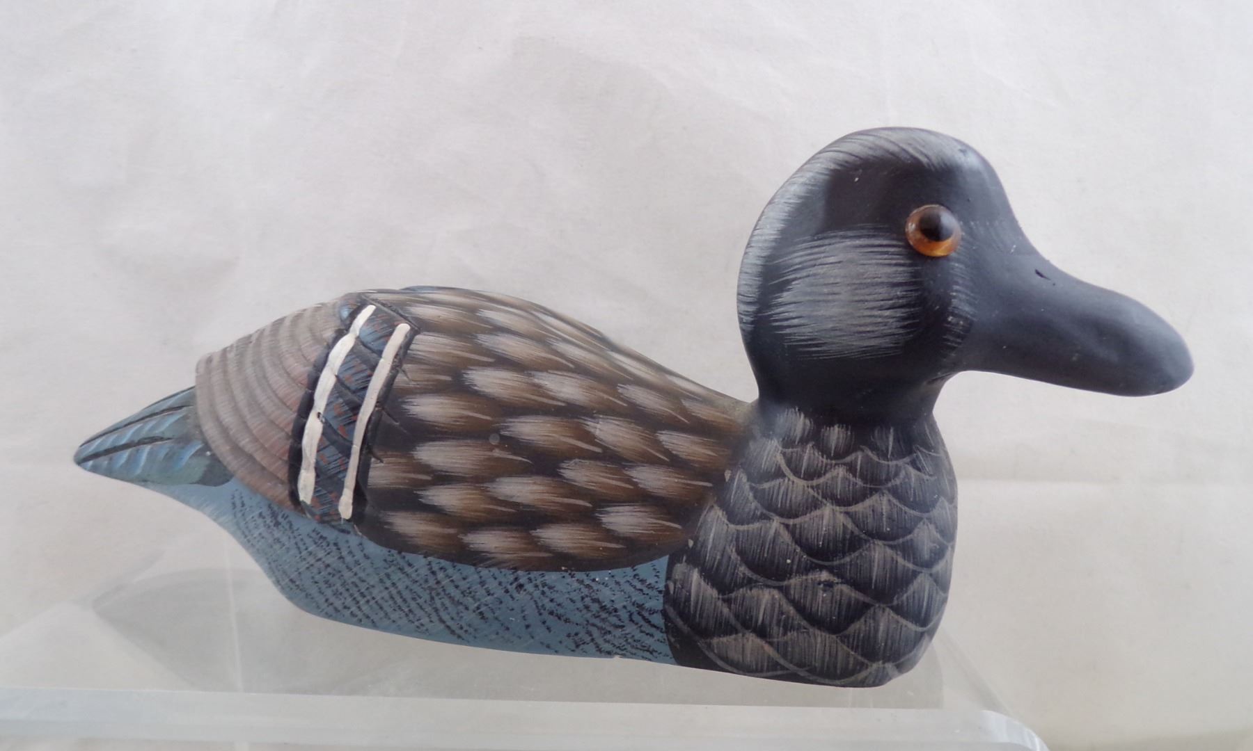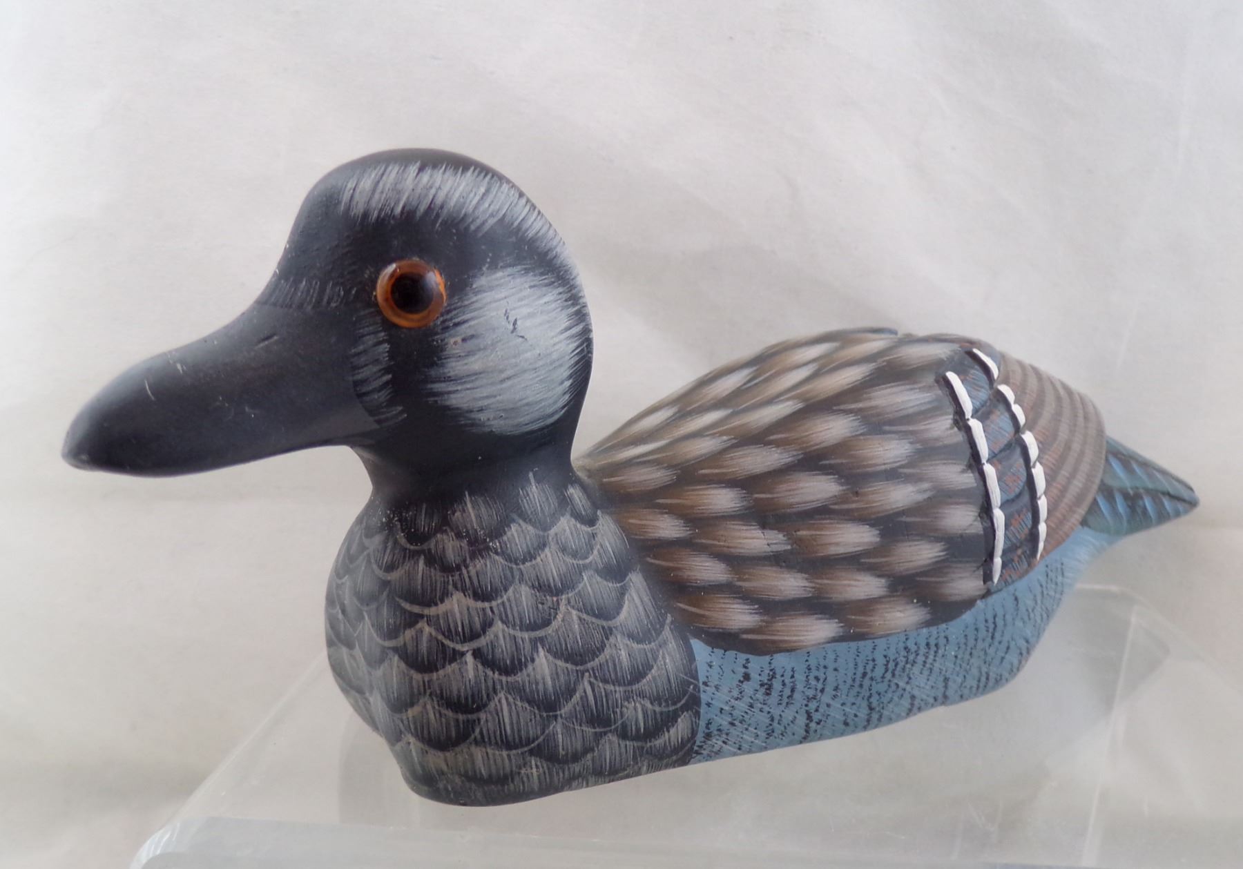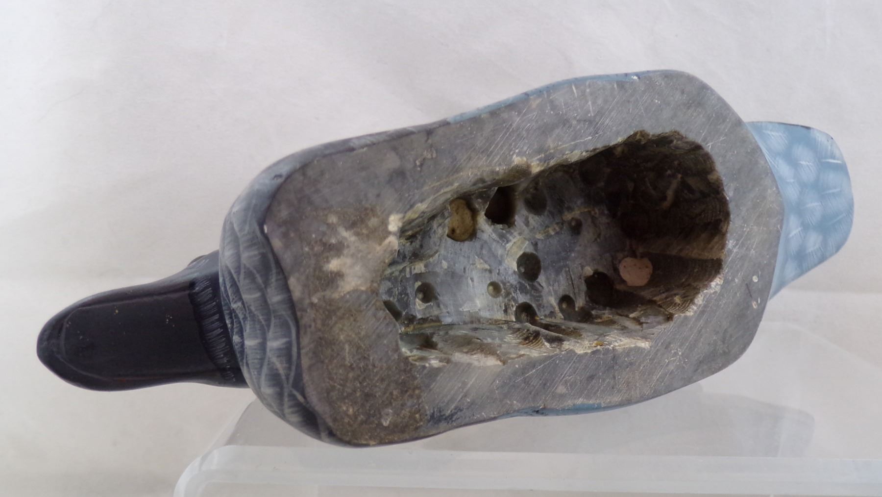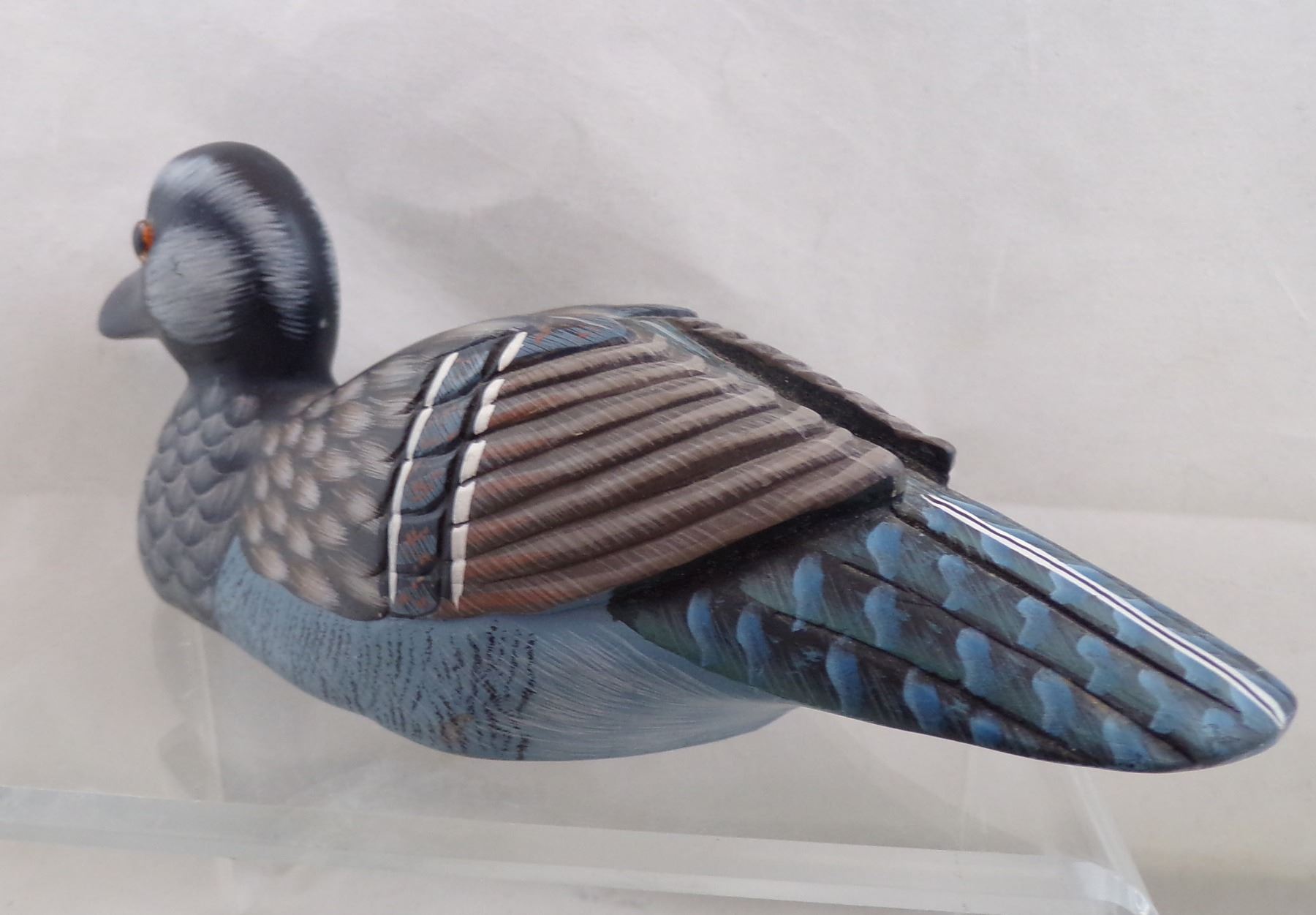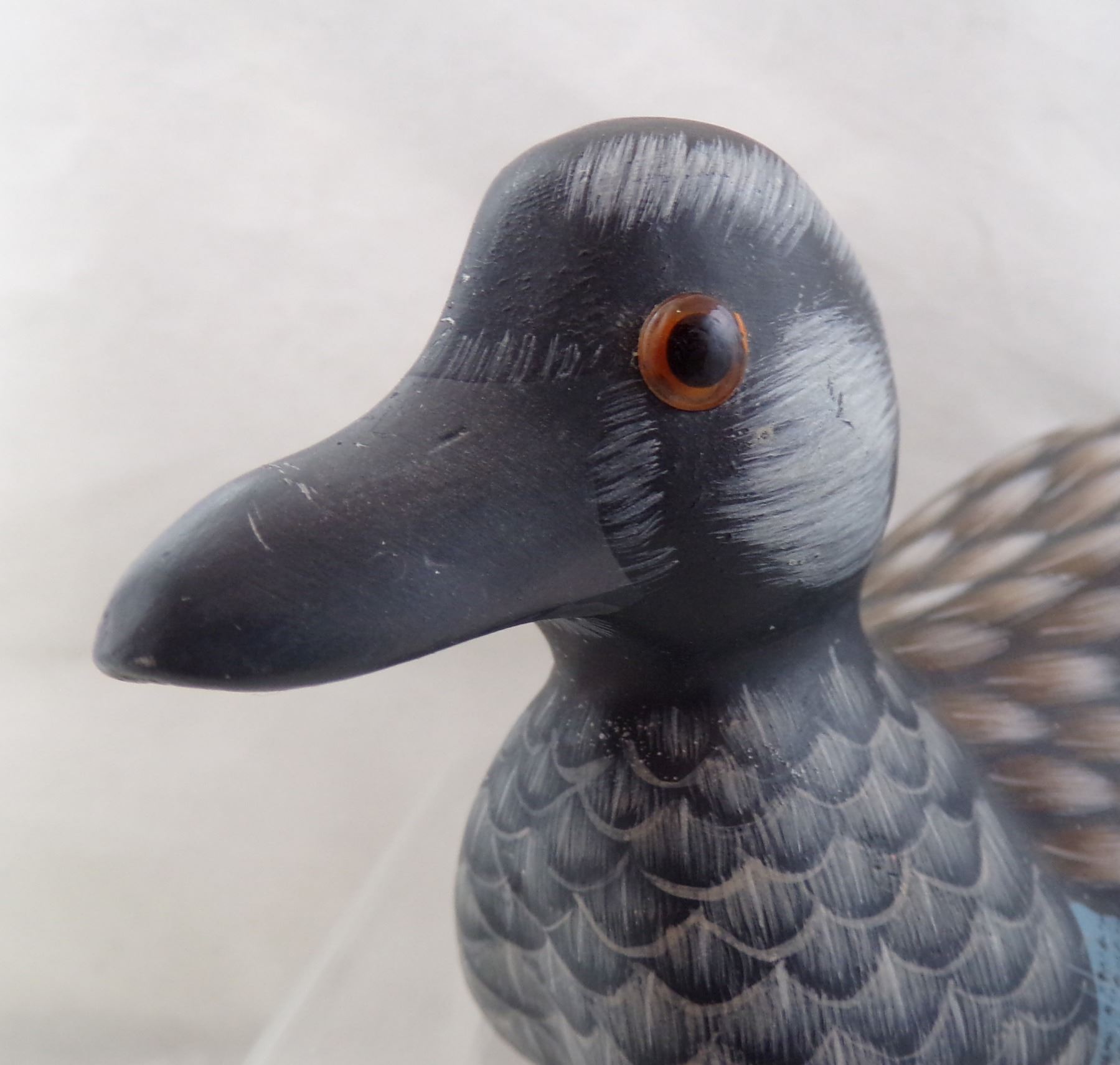 Vintage Hand Painted Soapstone Duck Paperweight, glass eyes, measures 8''L x 3''H x 2.75''W