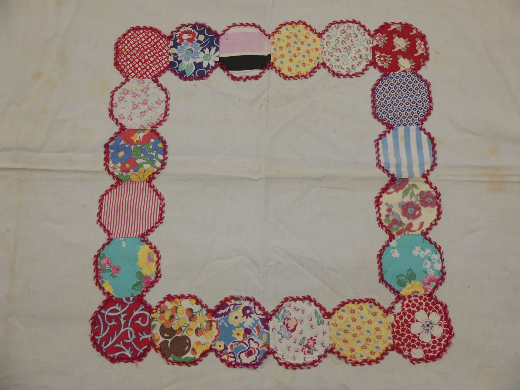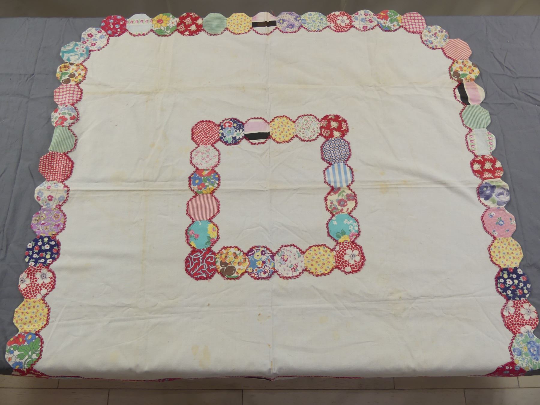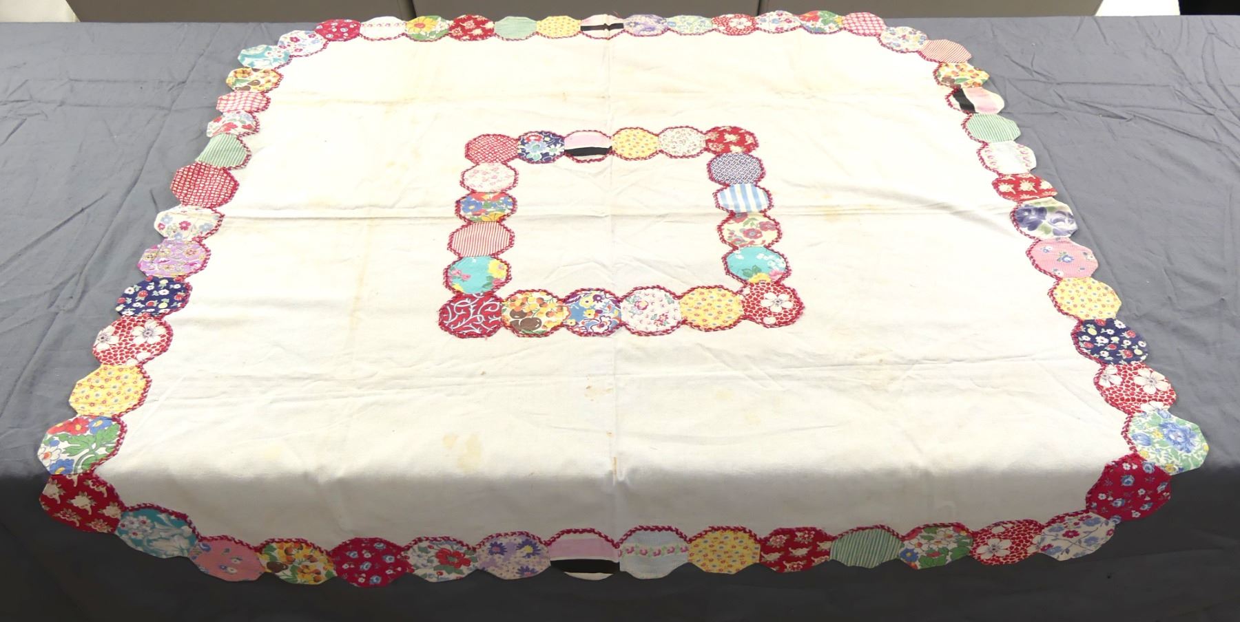 Vintage Hand Stitched Penny Applique Tablecloth/Topper