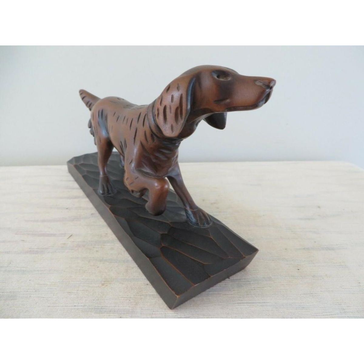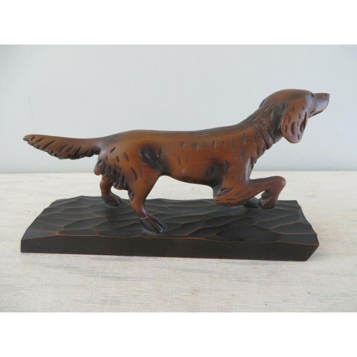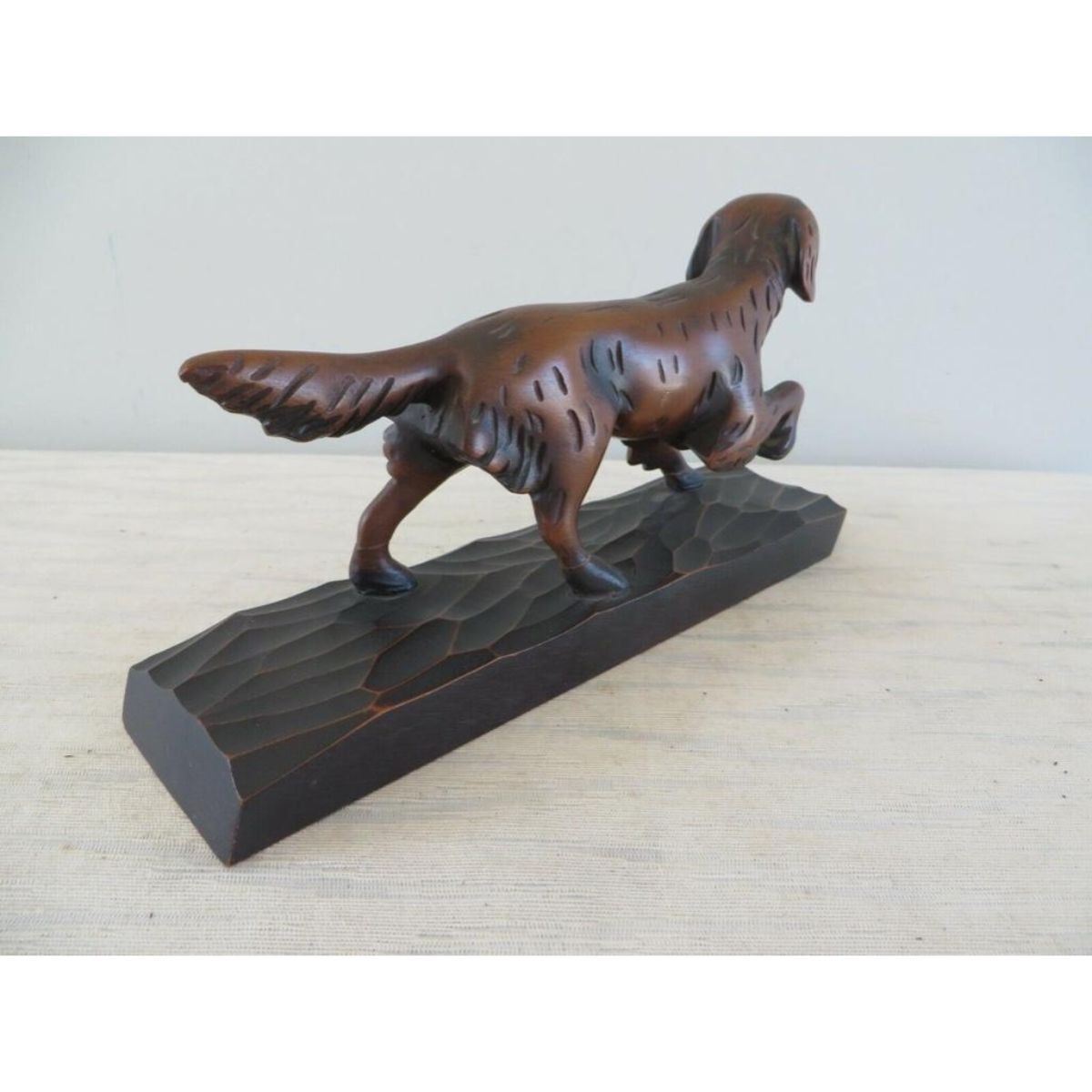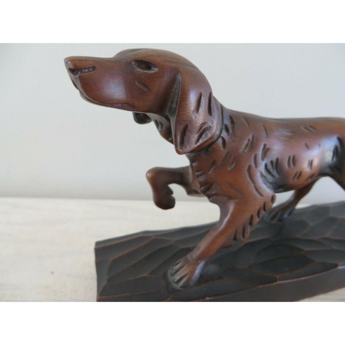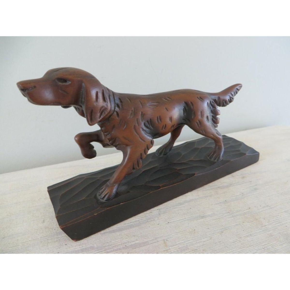 Vintage hand-carved wood hunting bird dog, pointer, setter sculpture. 7" L X 4" H.