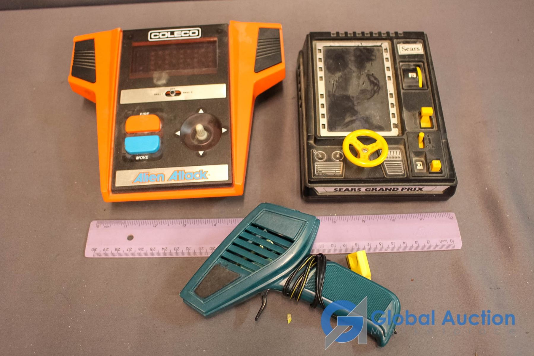 Vintage Handheld Coleco Alien Attack & Sears Grande Prix Racing Game