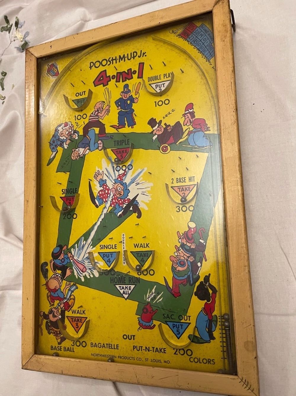 Vintage handheld pinball game, Poosh-M-Up Jr., from the lifetime collection.