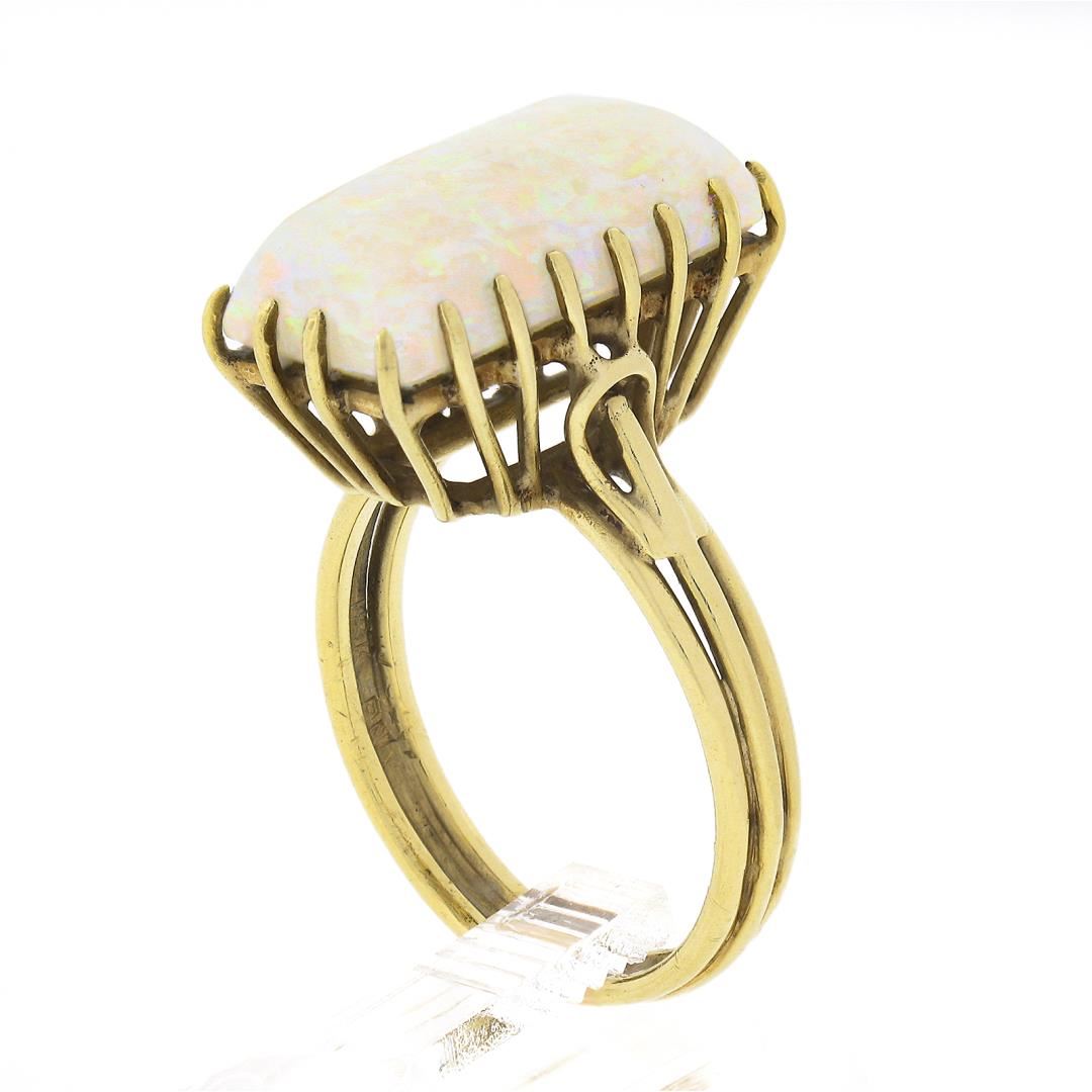 A vintage handmade solid 18k yellow gold solitaire ring, with 1 rectangular cut natural opal (17.1x8.9mm). The ring is size 8.0, weighs a total of 6.43 grams, and measures 18.70mm wide.