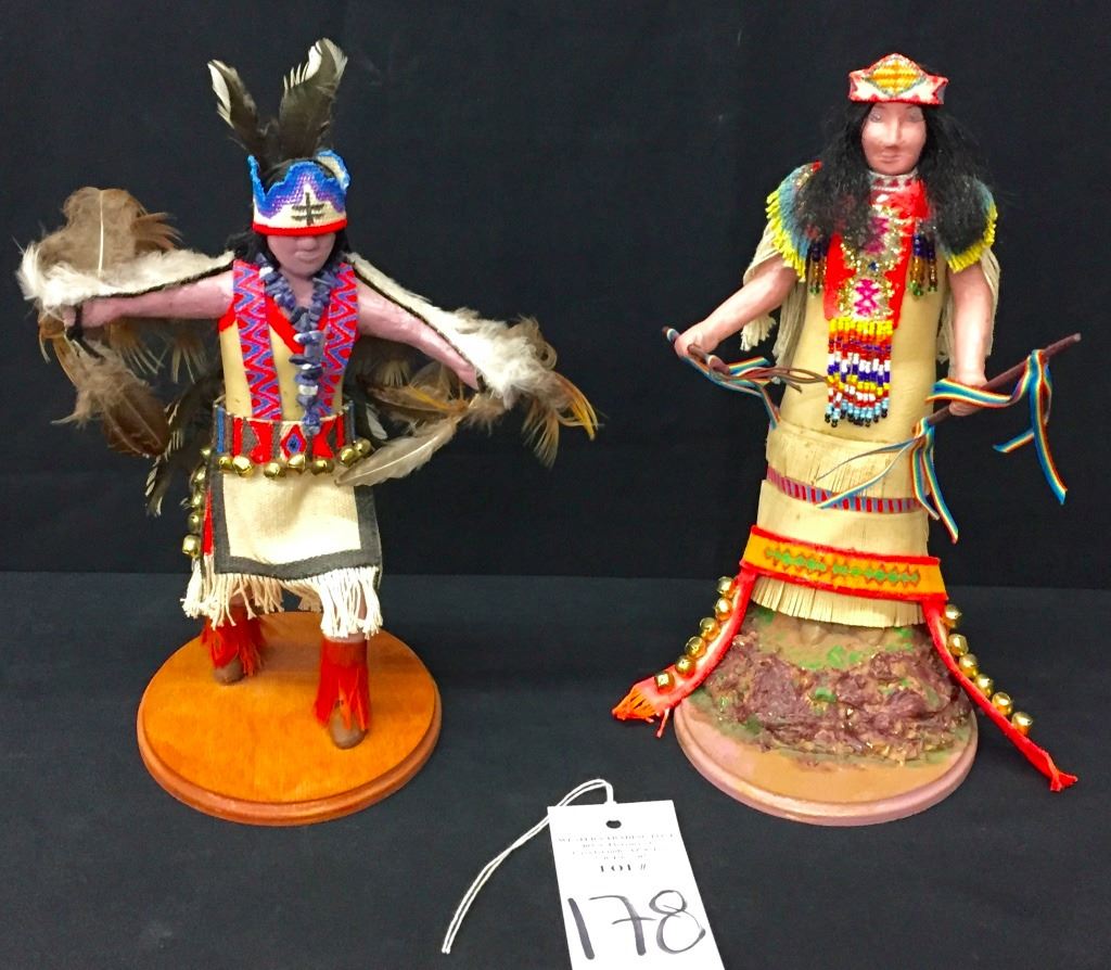 Augustine Galvez is a Tohono O’odham artist. These vintage statues are hand-carved, painted and adorned. Each measures approximately 11 inches tall. Please look closely at pics - they are an important part of our description. Shipping: There will be a $10 handling / packaging fee for shipping this lot. The actual cost of postage will be added on top of that.