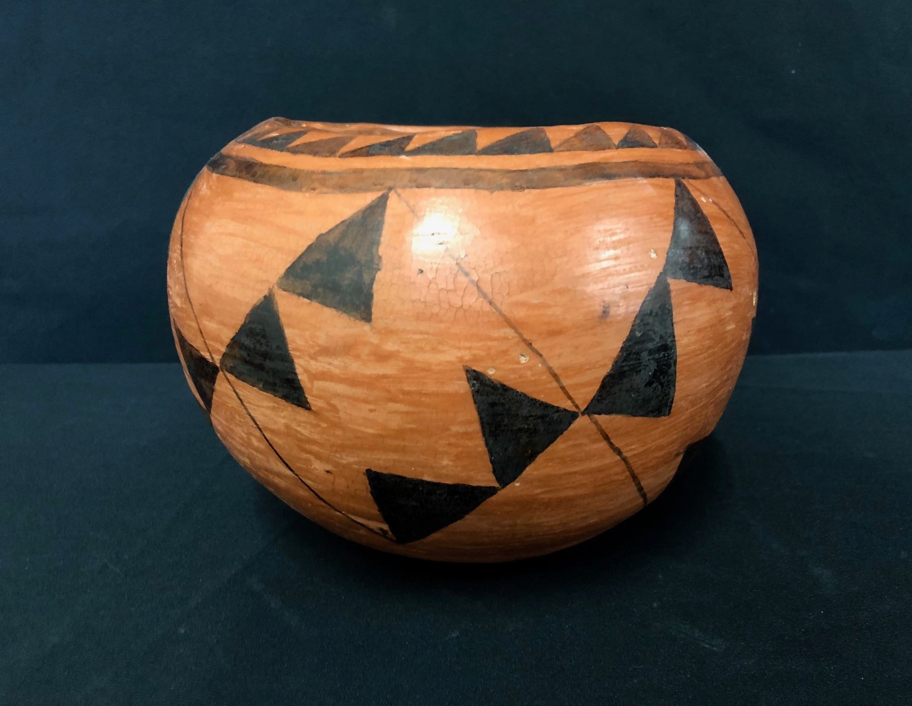 Maker: Delia Manuel, Tohono O’odom. Approx. Age: Vintage, circa 1970s. Size: Measures 9 1/2” w x 7 1/8” h. Additional Info: Vintage, Handmade Tohono O’odom Pot, signed. Condition: Good for it’s age, normal wear and fading expected. Please look closely at the pictures - they are an important part of our description. Shipping: There will be a $10 handling / packaging fee for shipping this lot. The actual cost of postage will be added on top of that.