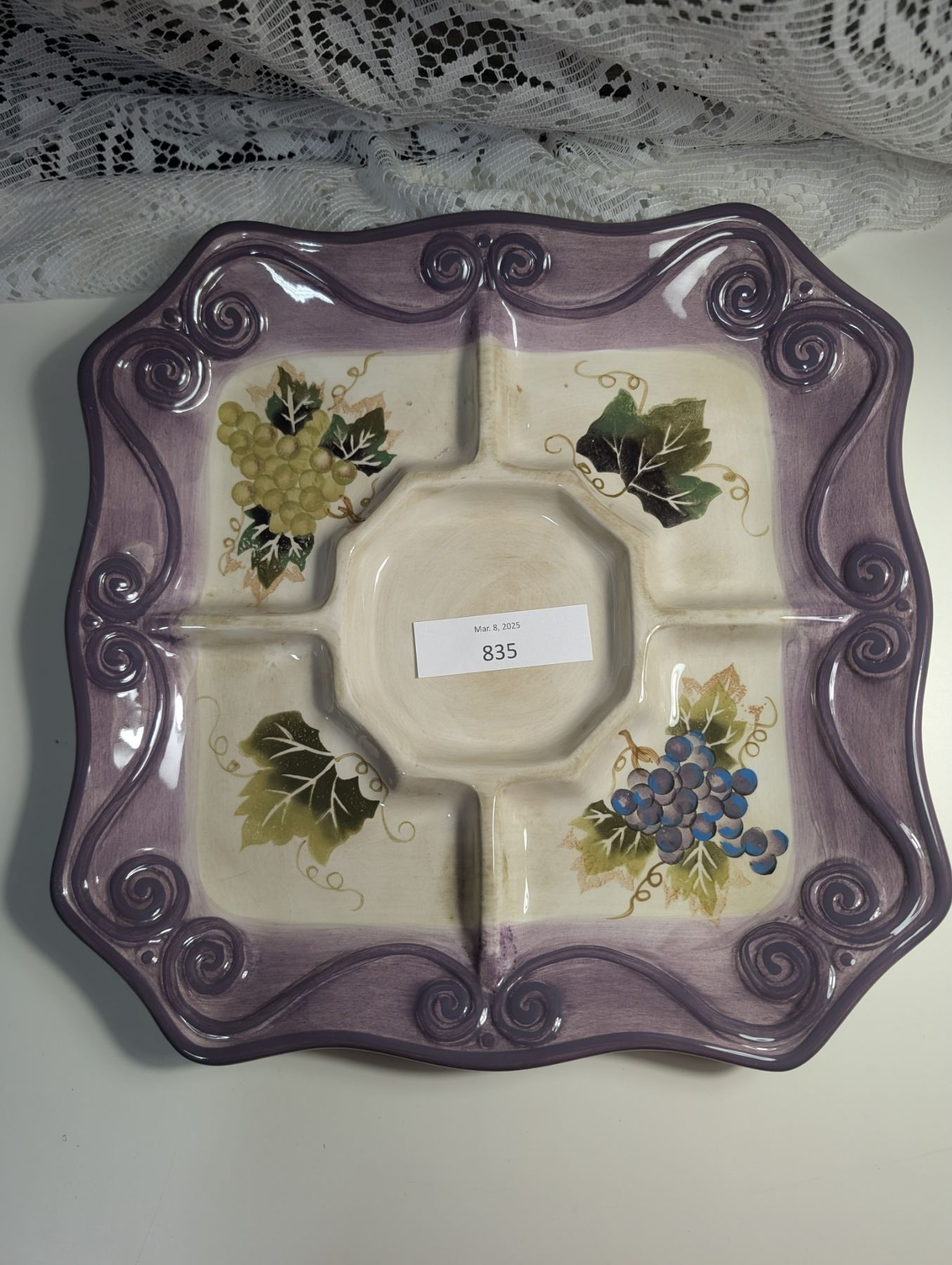 Vintage Handpainted Merlot Divided Serving Platter (missing dipping bowl) Approx. 13" Square