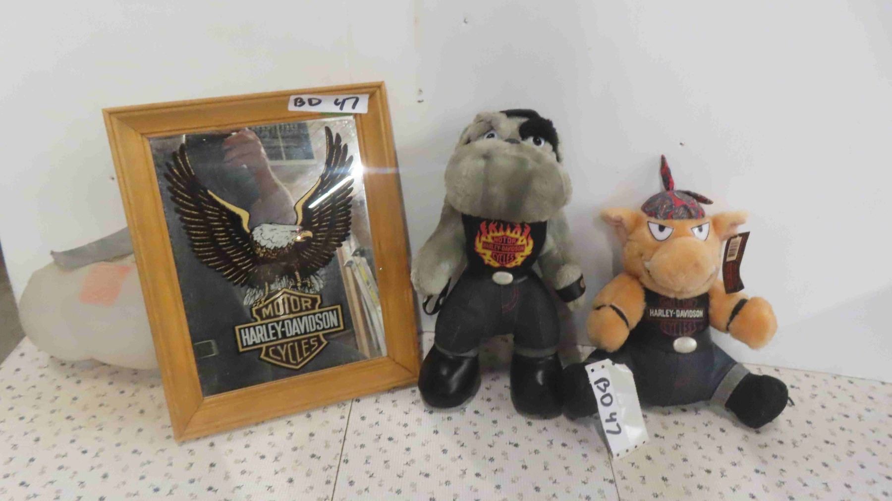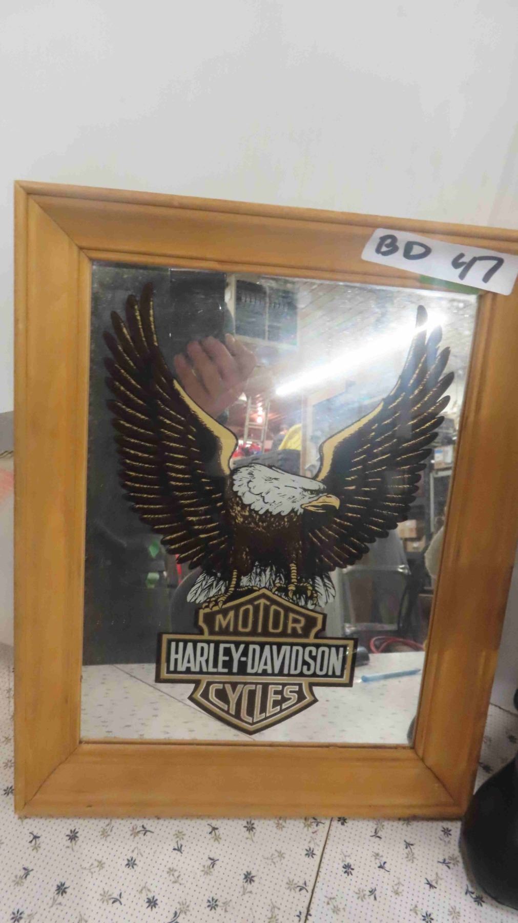 Vintage Harley Davidson Motorcycles Carnival Mirror with Wood Frame 14 1/2'' x 11 1/2'' - Excellent Condition