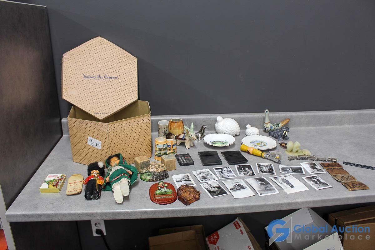 Vintage Hat Box w/Misc Decor & Vintage Photos