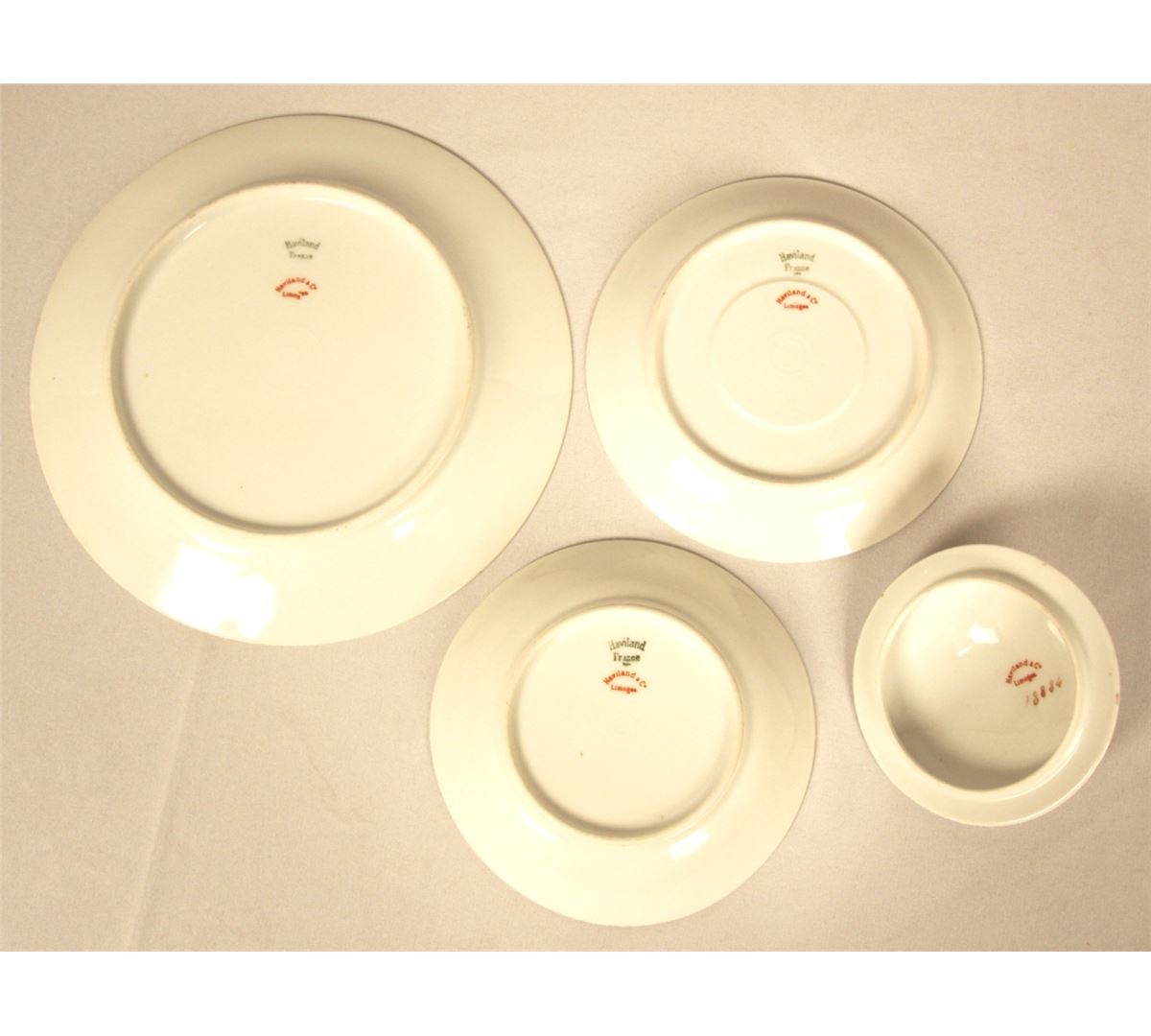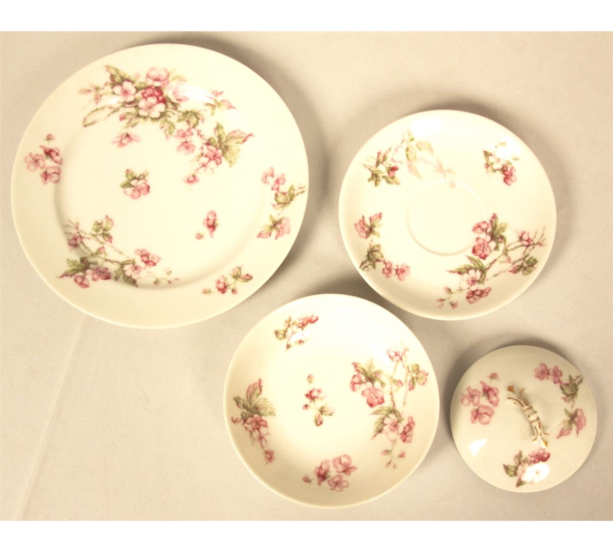 This is a vintage lot of 10 pieces of Limoges by Havilland & Co. It is white with pink flowers. Pattern is Schleiger 241C. This lot consists of 3 lunch plates (7.5"), 5 saucers (5.5"), 1 fruit/berry bowl (5"), 1 sugar lid (3.5"). No chips, cracks or repairs. Valued between $200-$250.00.